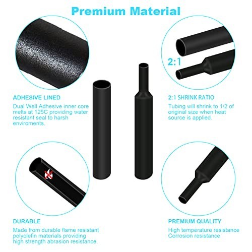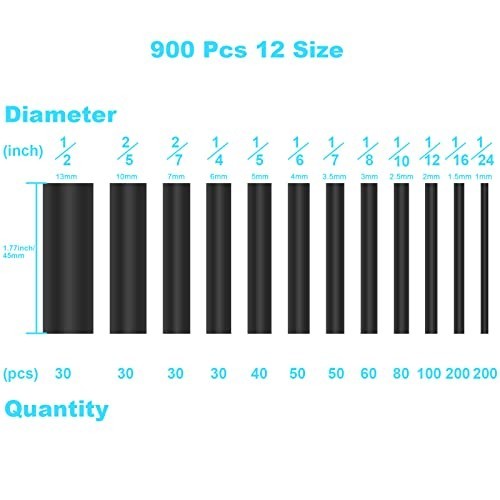900 PCS Heat Shrink Tubing Kit Marine Grade Black Wire Wrap Assortment Electron
