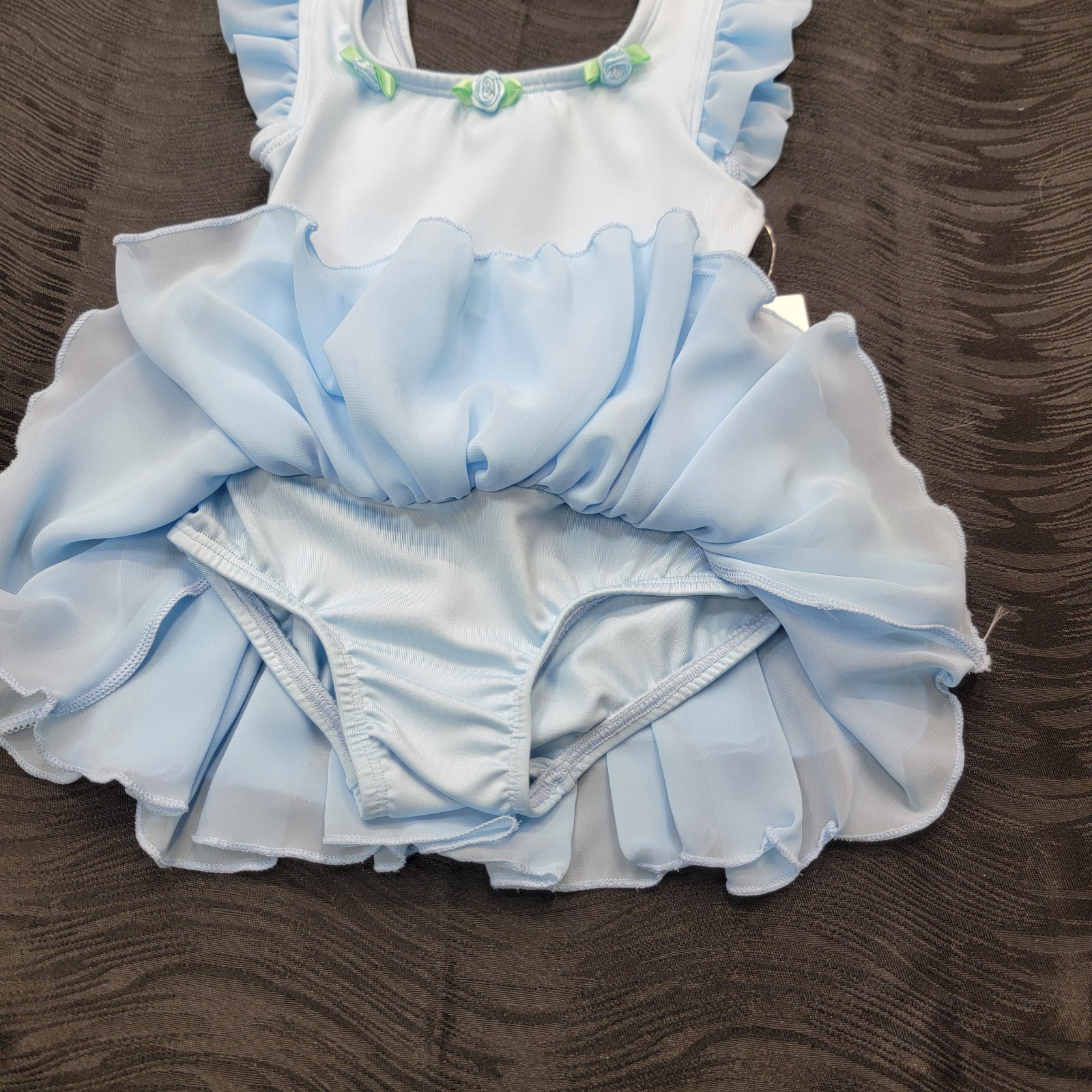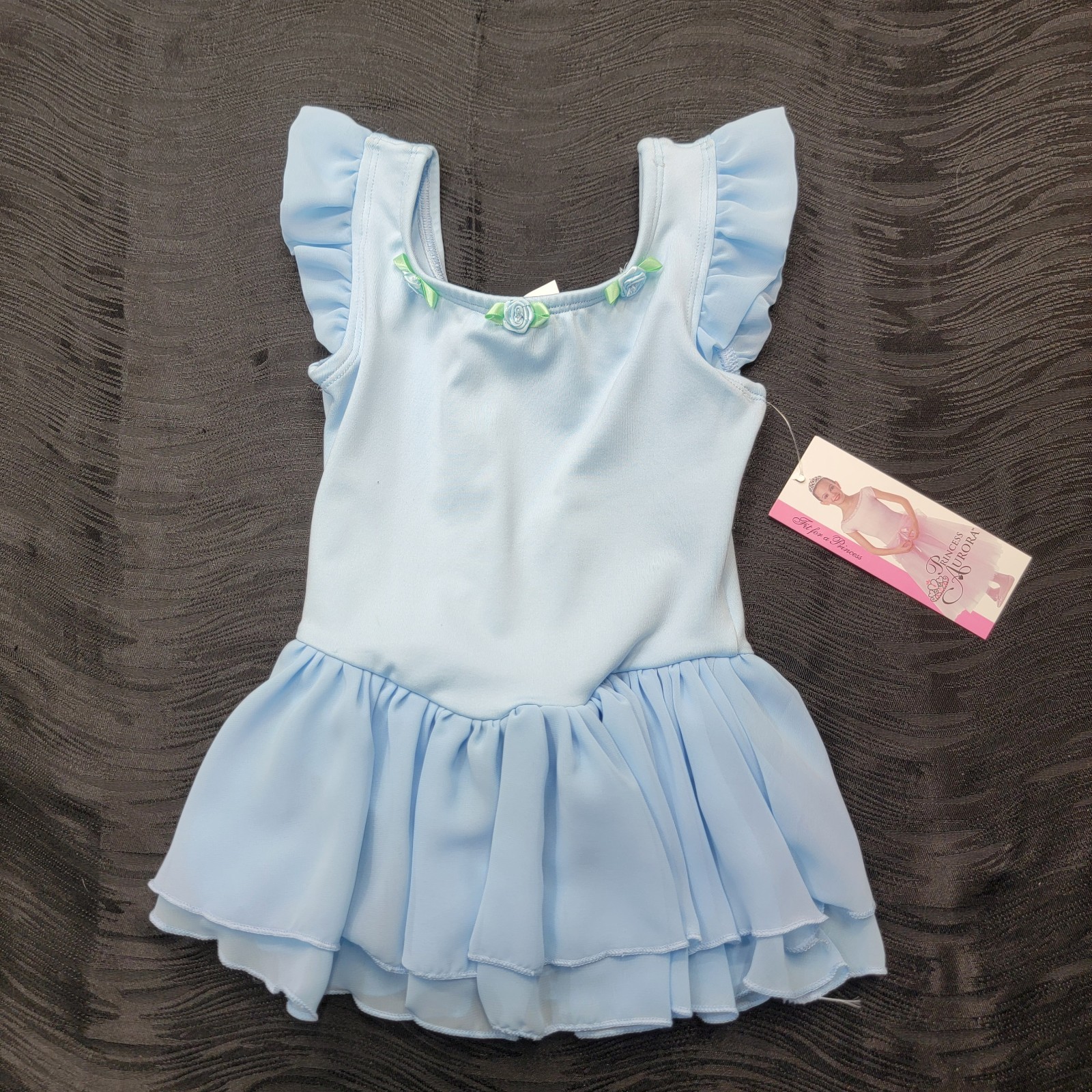 Body Wrappers Blue Princess Aurora Tank Strap Dress Neck Flowers Sheer Skirt 3-4