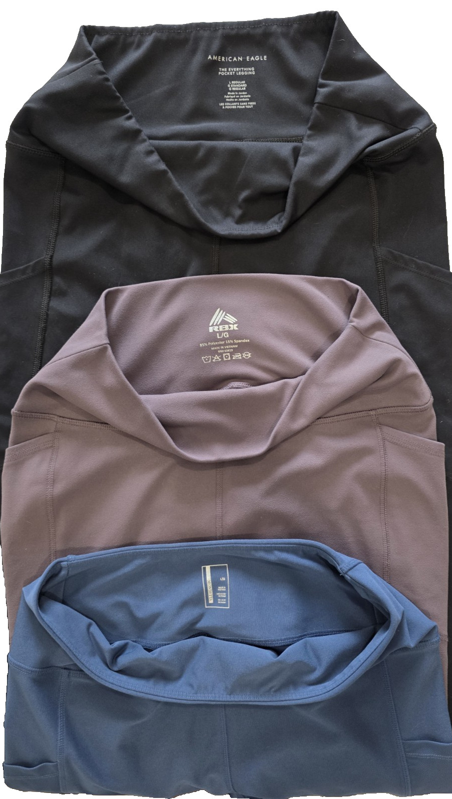 Capri Leggings, Set of 3, Blue, Black Purple, Size L