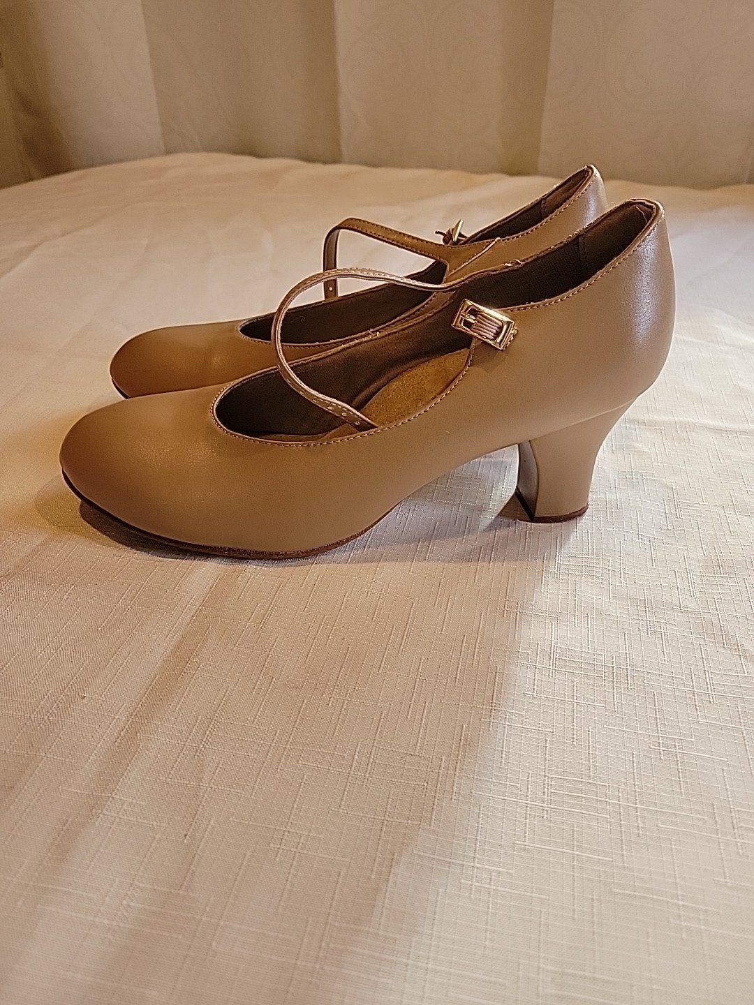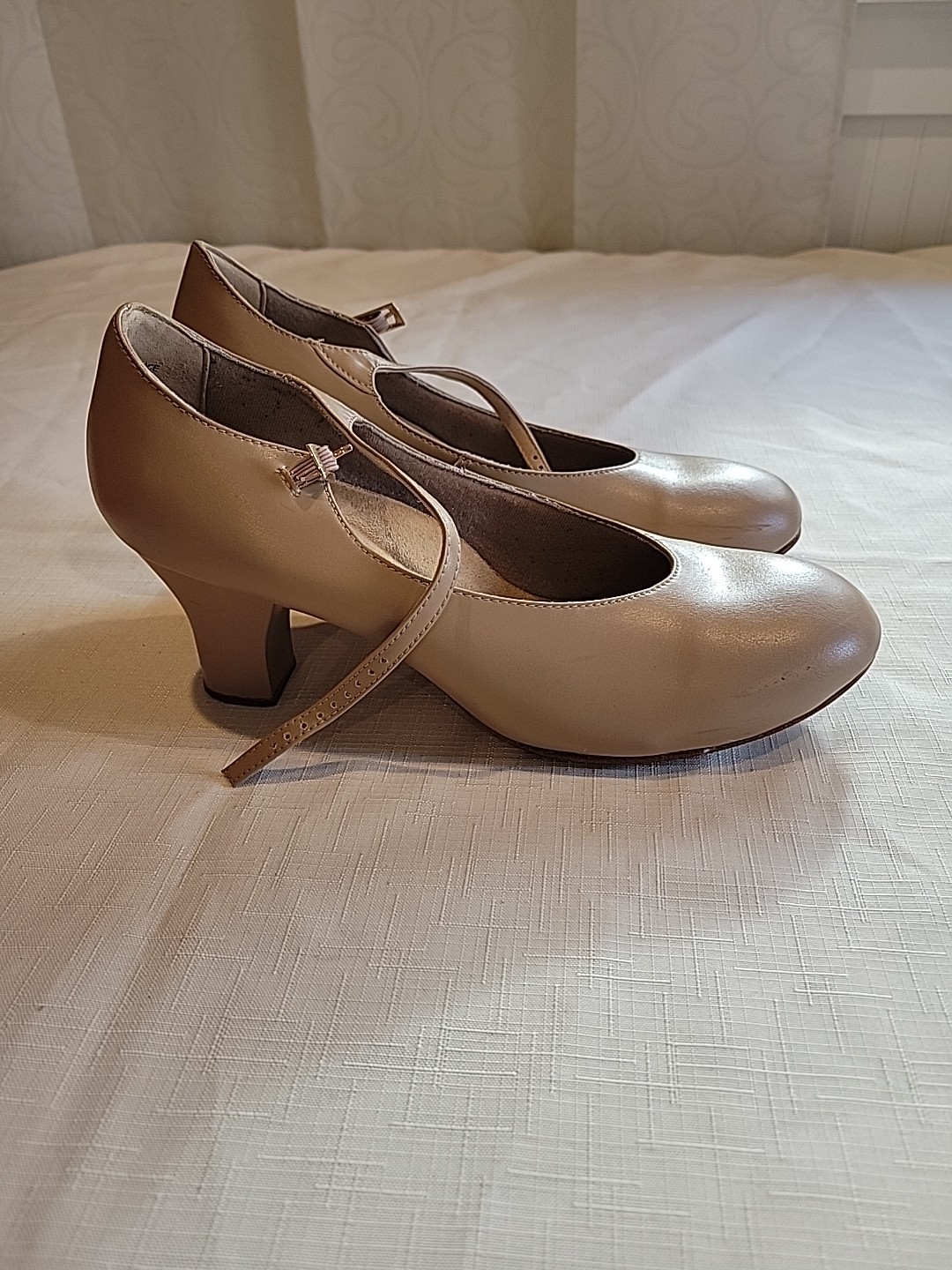 как выглядит Capezio character shoes 9w 2.5 heel beige color women