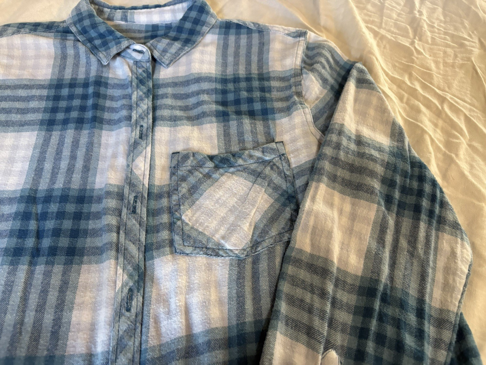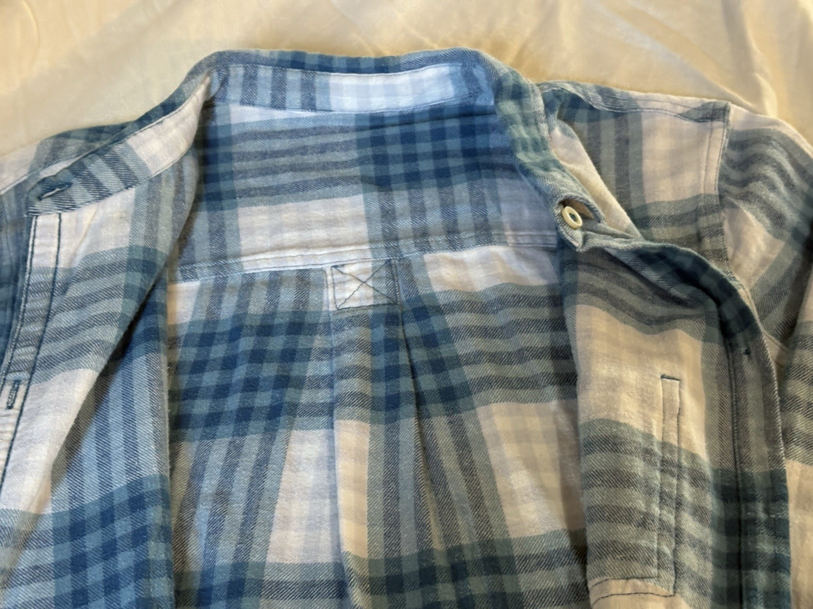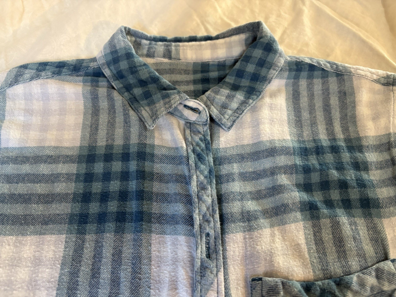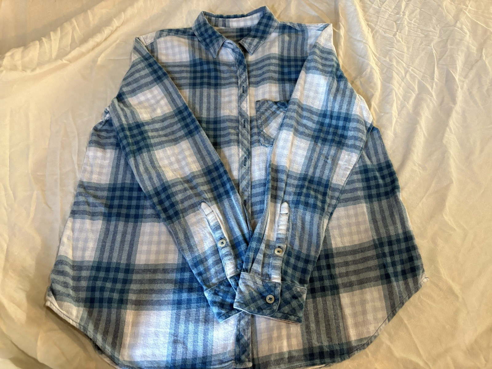 как выглядит NO TAG FLANNEL BLUE PLAID MED. LONG SLEEVED WOMENS BLOUSE/SHIRT PRE-OWNED фото