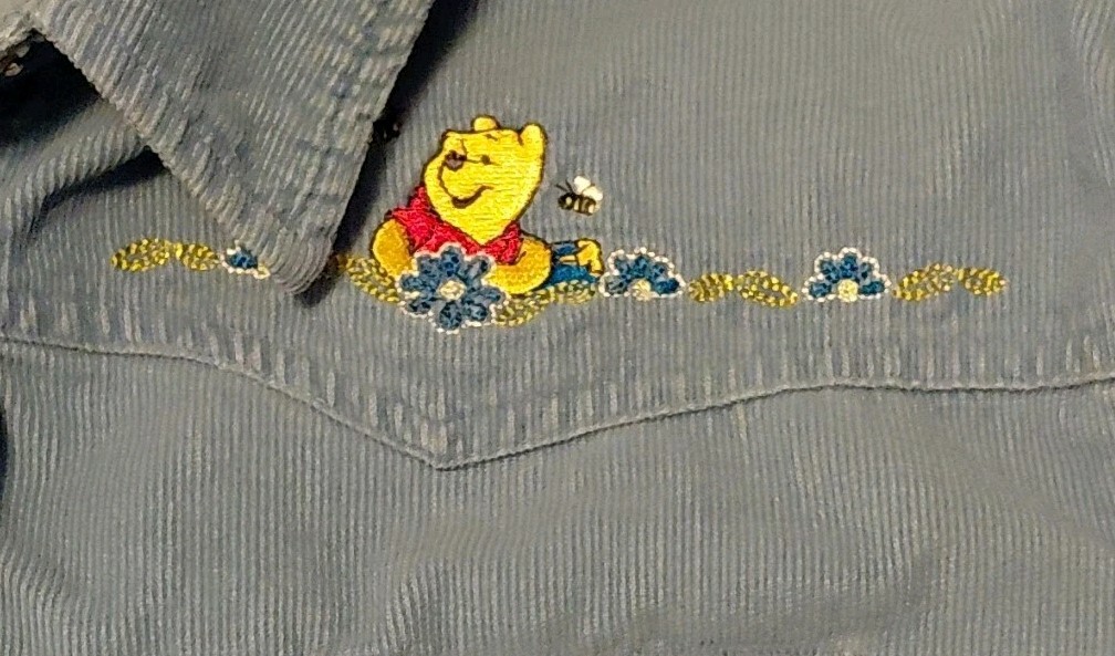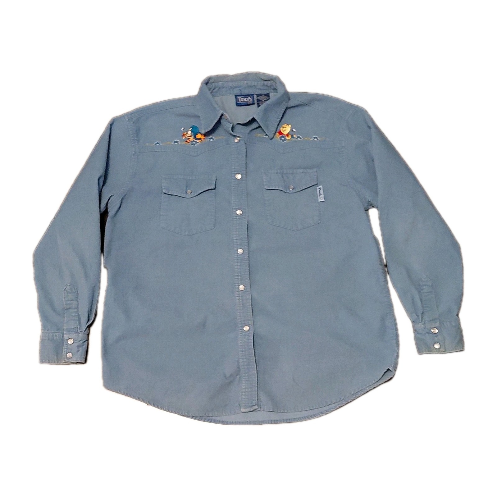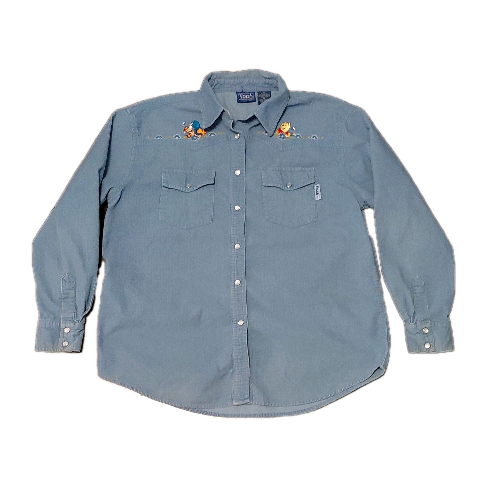 Vintage Disney Blue Corduroy Button-Up Shirt Embroidered Winnie The Pooh Tigger