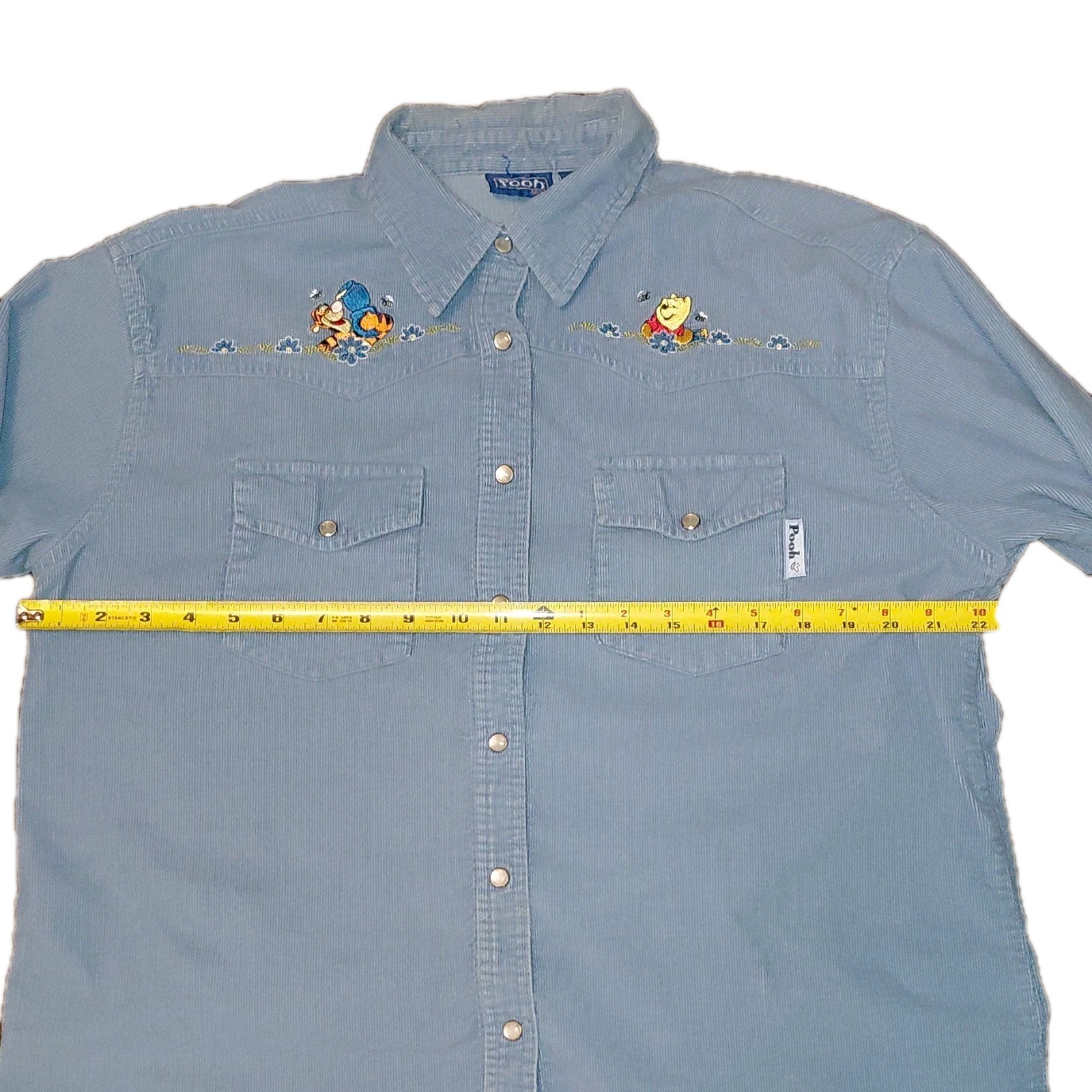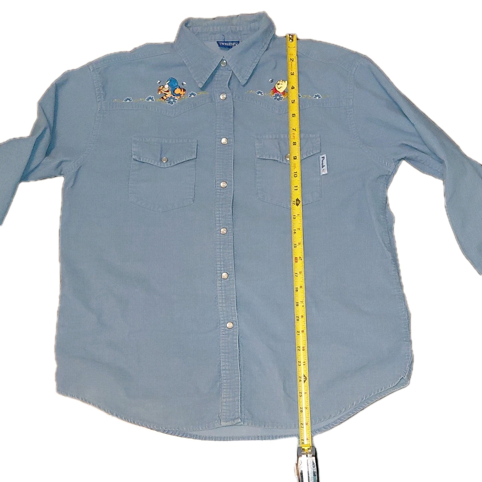как выглядит Vintage Disney Blue Corduroy Button-Up Shirt Embroidered Winnie The Pooh Tigger фото