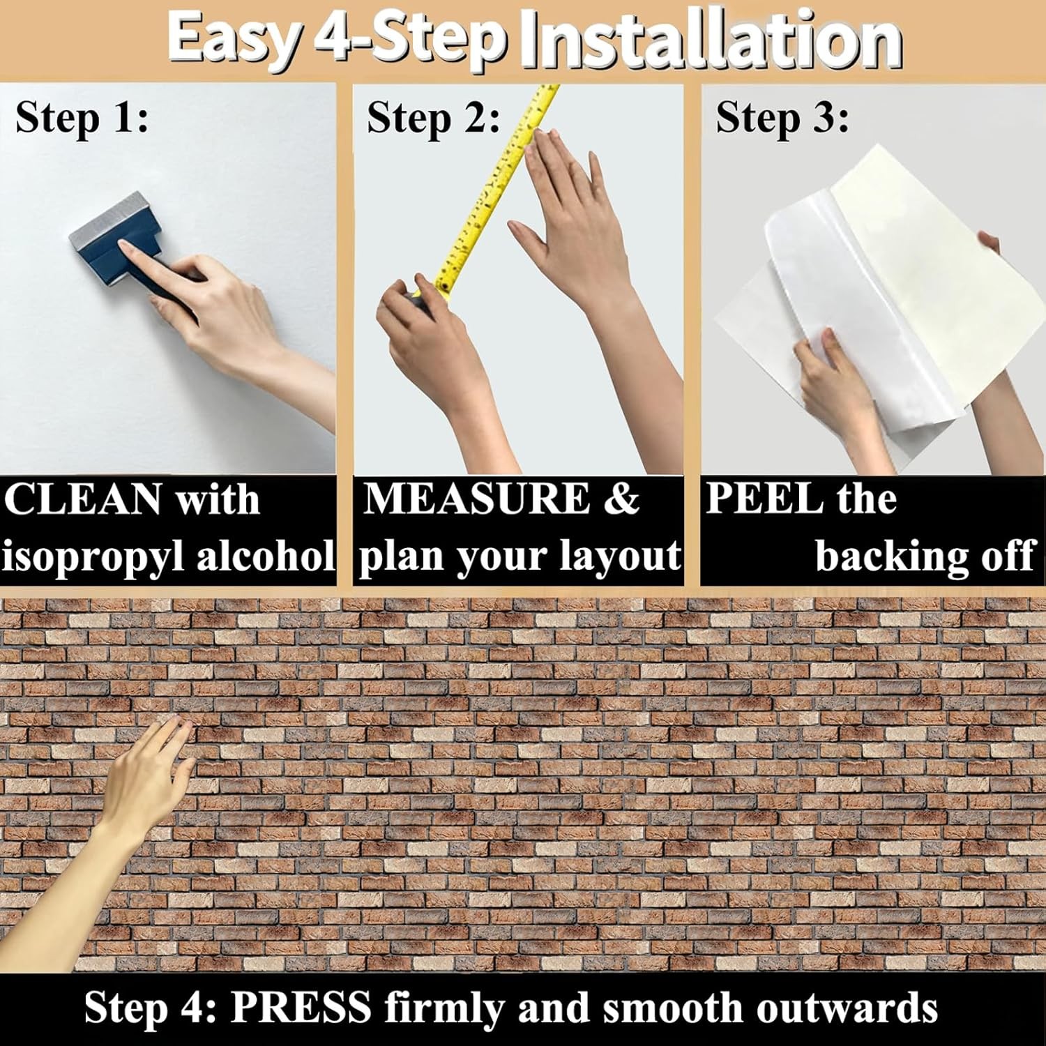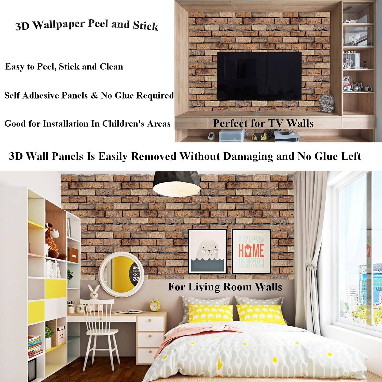 3D Wall Panels Peel and Stick - 10 Pack Brick Textured PVC Panels