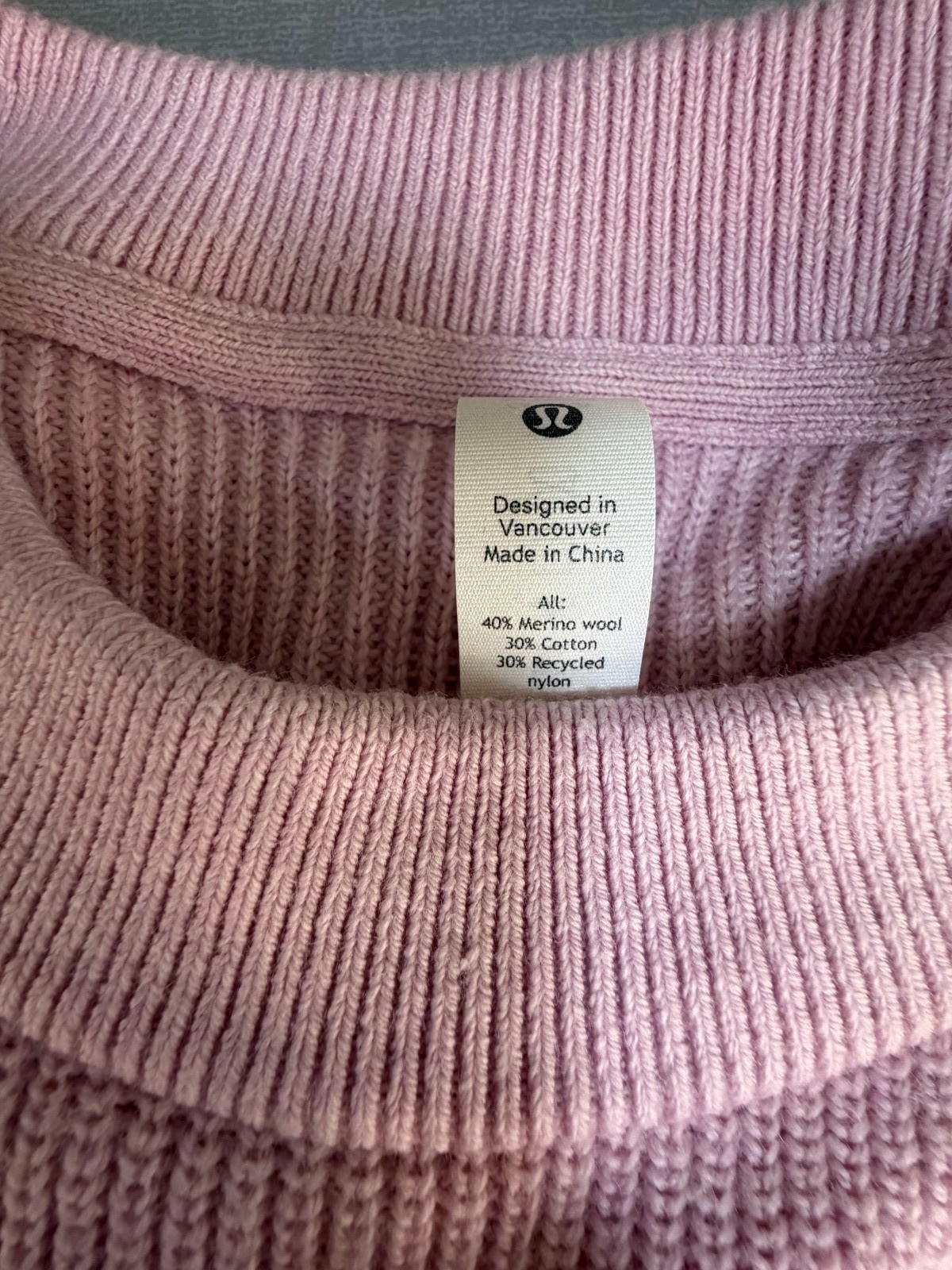 как выглядит Lululemon Merino Wool-Blend Ribbed Crewneck Sweater Women s 10 Pink Peony фото