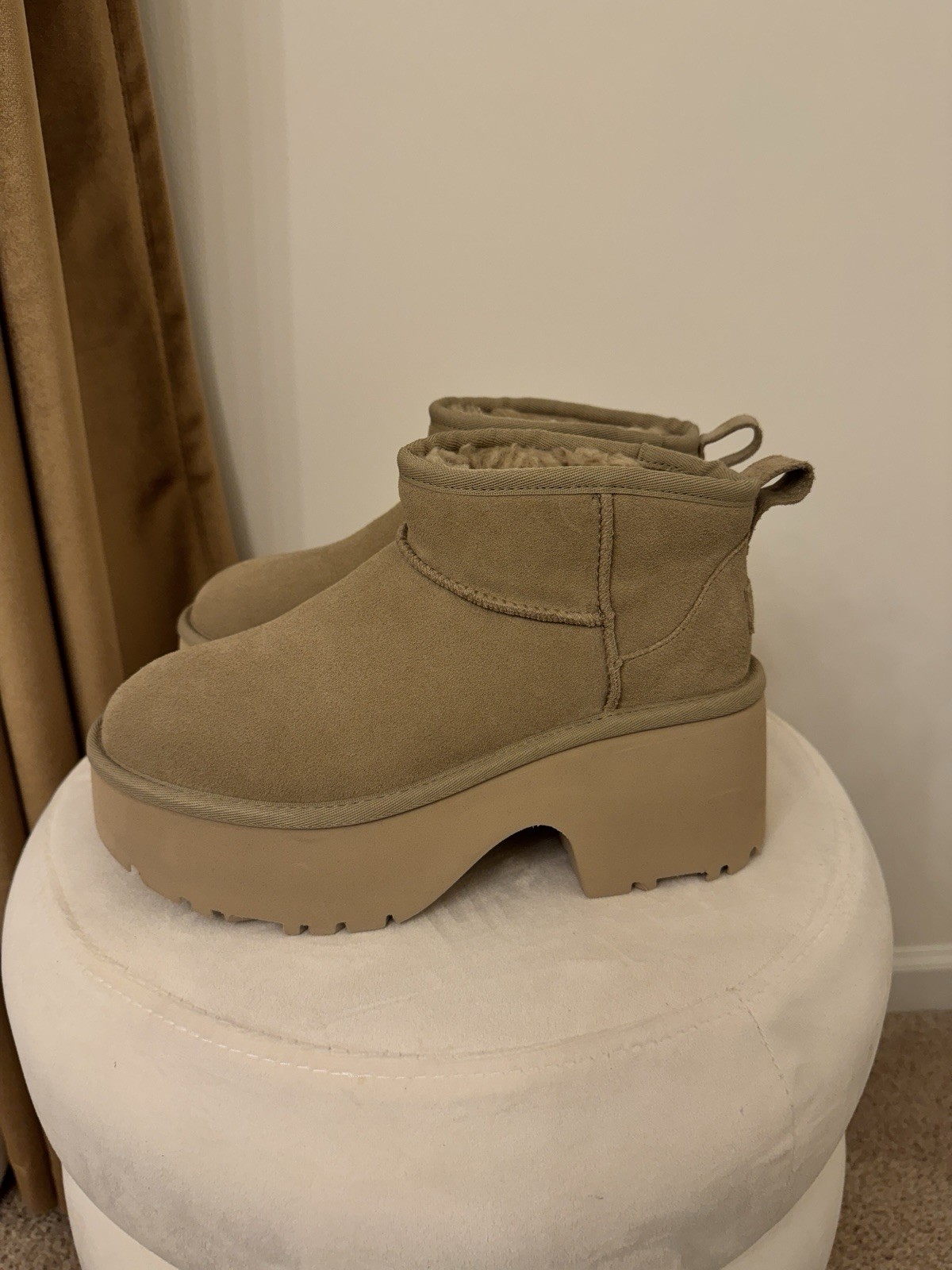 как выглядит New Ugg Ultra Mini New Heights Platform Boot Sand Suede Women