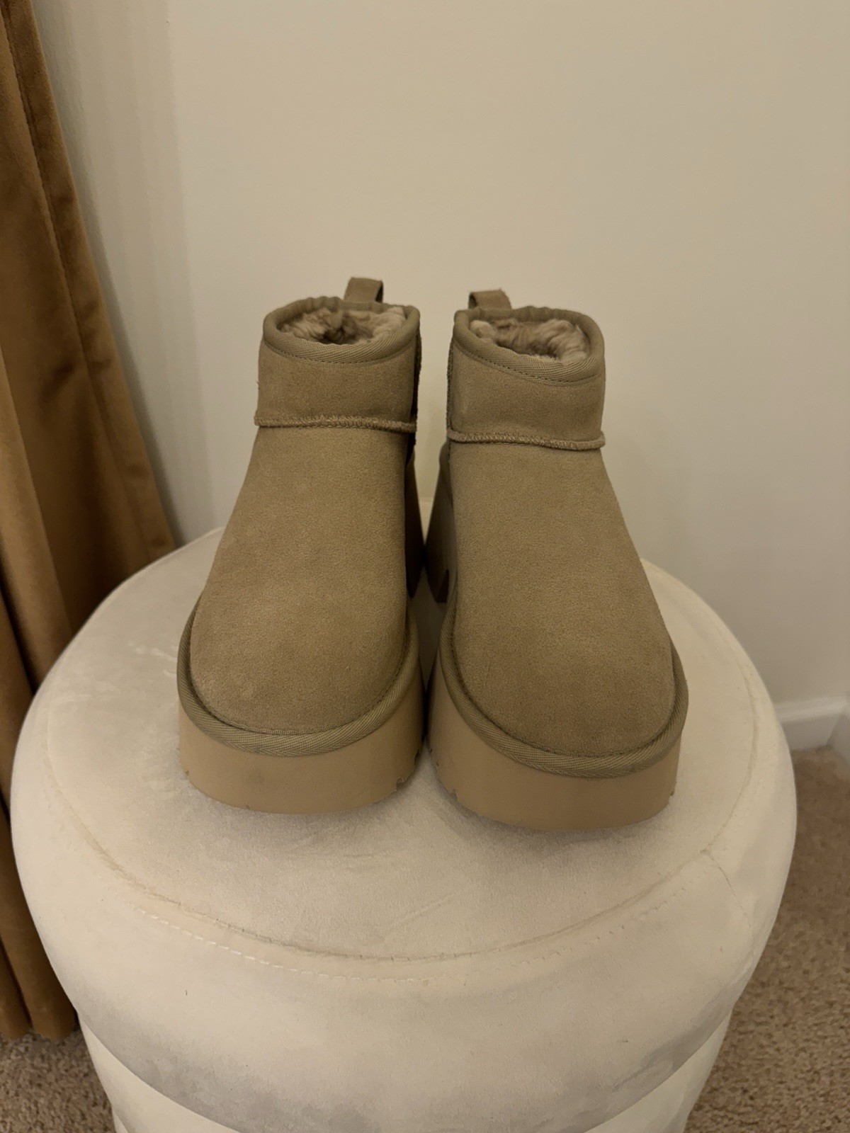 как выглядит New Ugg Ultra Mini New Heights Platform Boot Sand Suede Womens Size 7 фото