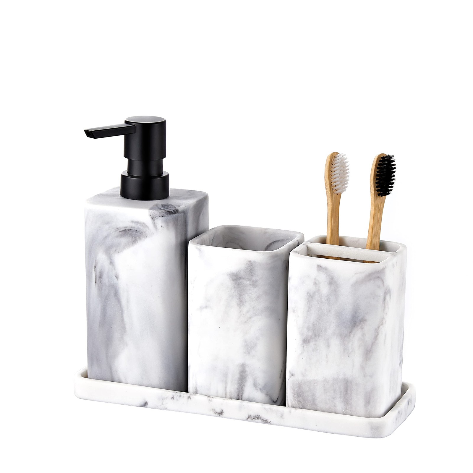 ZCCZ Toothbrush Holder for Bathrooms, White Marble Look Toothpaste and Makeup...