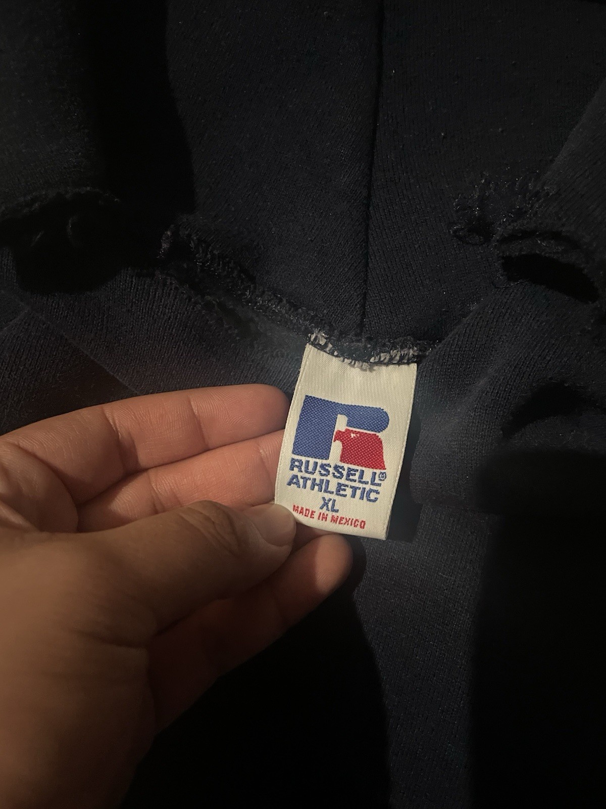 VTG y2k Russell Athletic Blue Hoodie Size XL Blank Basic Made in Mexico Cut Neck
