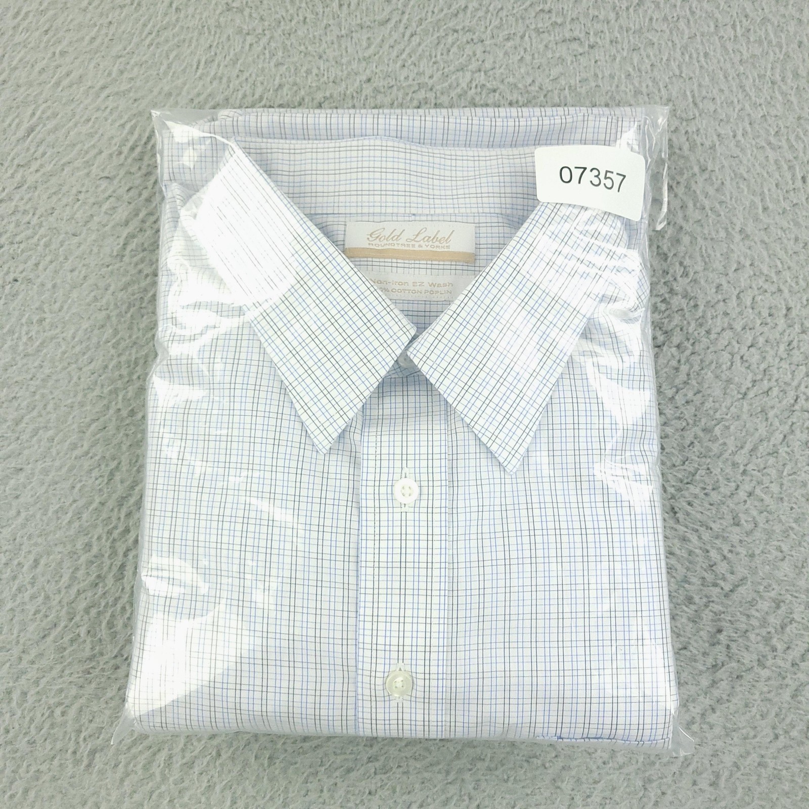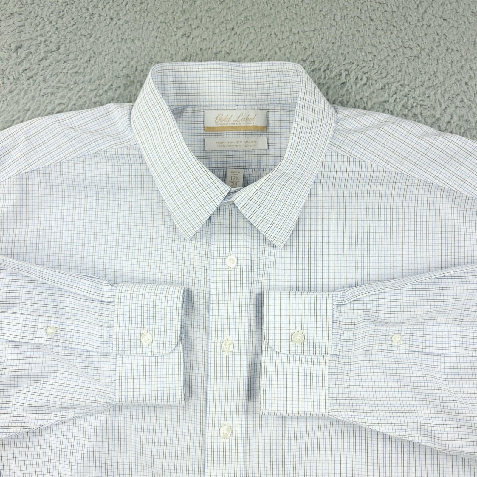 Roundtree Yorke Gold Label Dress Shirt Mens 17.5 Blue Check Non Iron