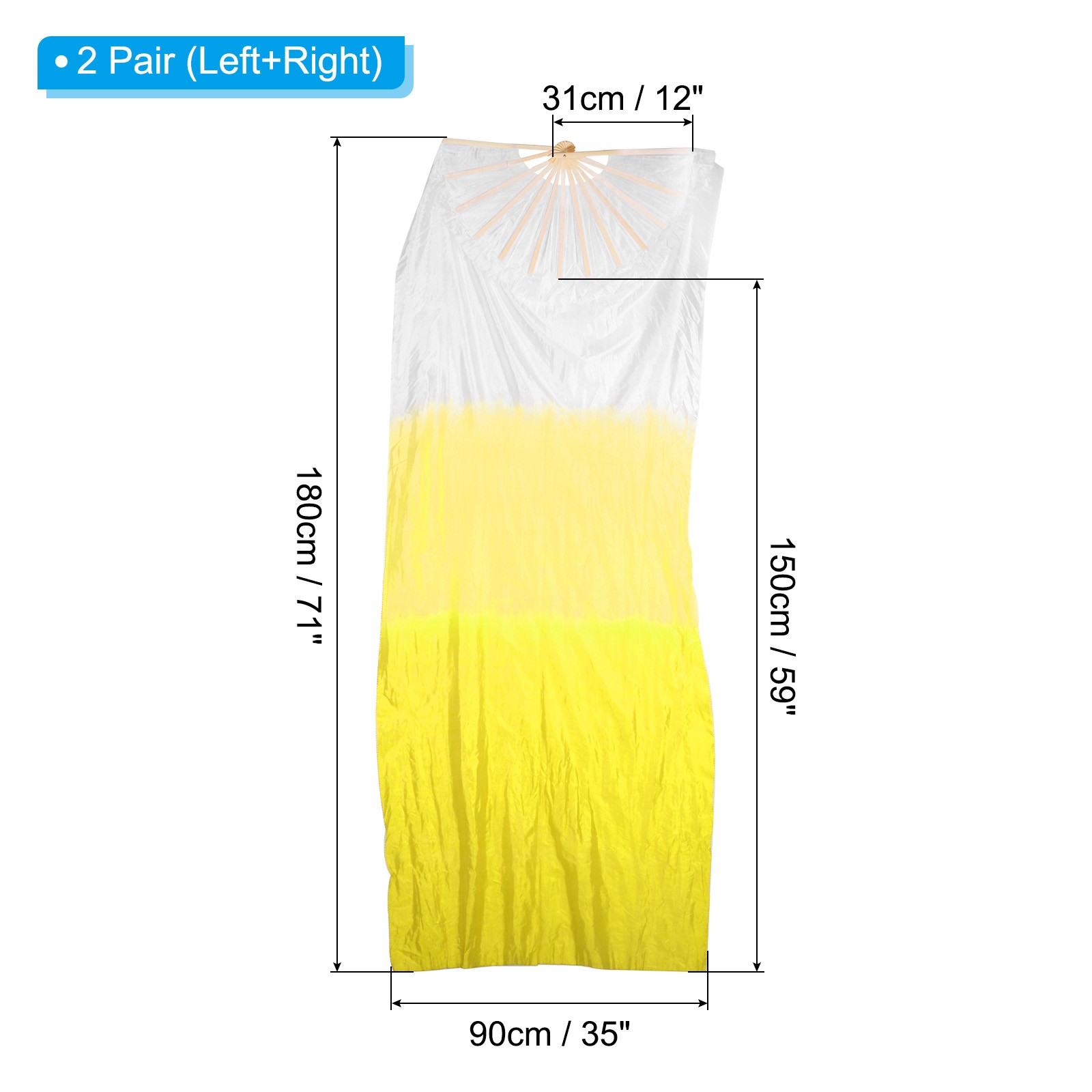 2 Pair Folding Belly Dance Silk Fan Veil 71, White Gradient Yellow