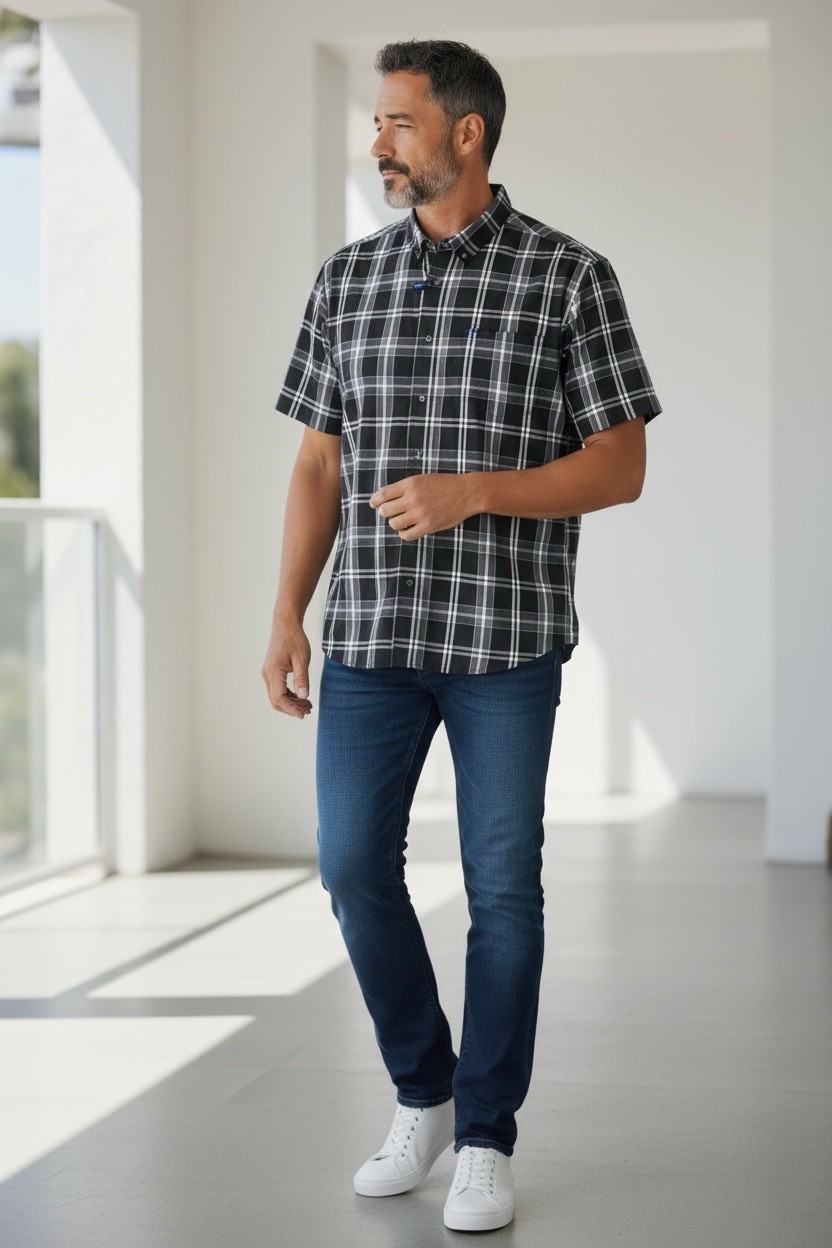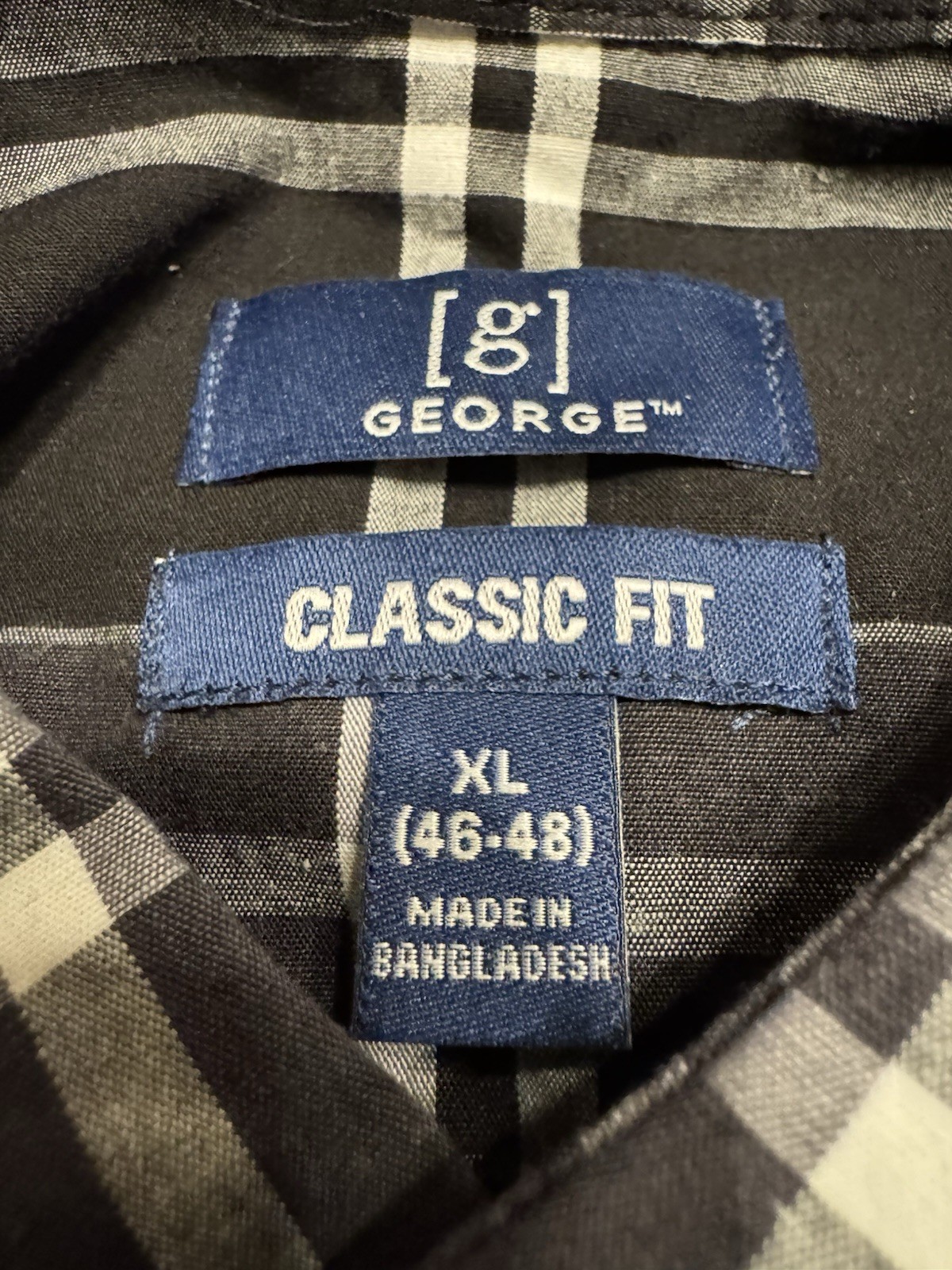 как выглядит George Mens Short Sleeve Stretch Poplin Shirt Plaid Black NWT фото