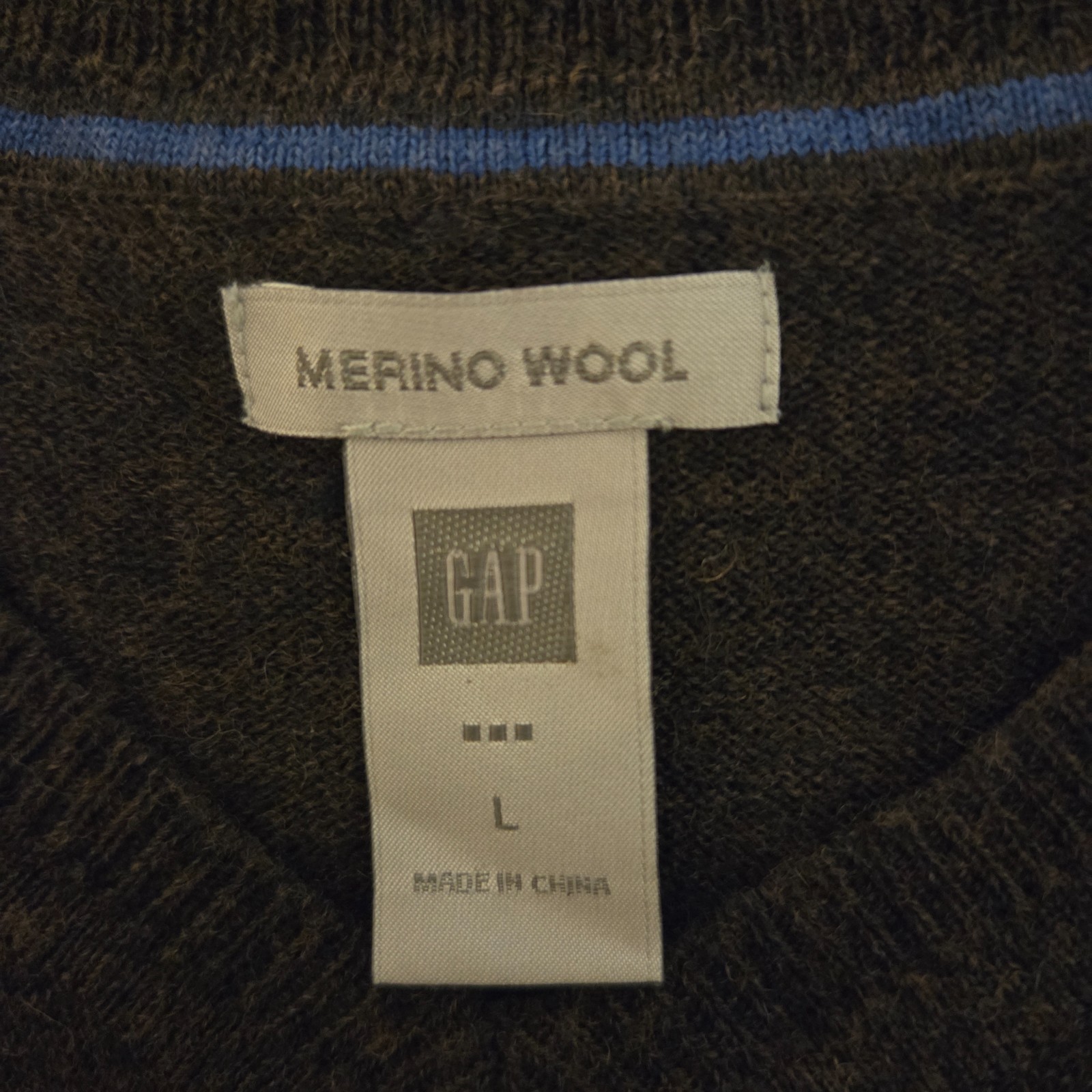 Vtg GAP Pullover High V-Neck Sweater 100 Merino Wool Mens L Brown Y2K Preppy