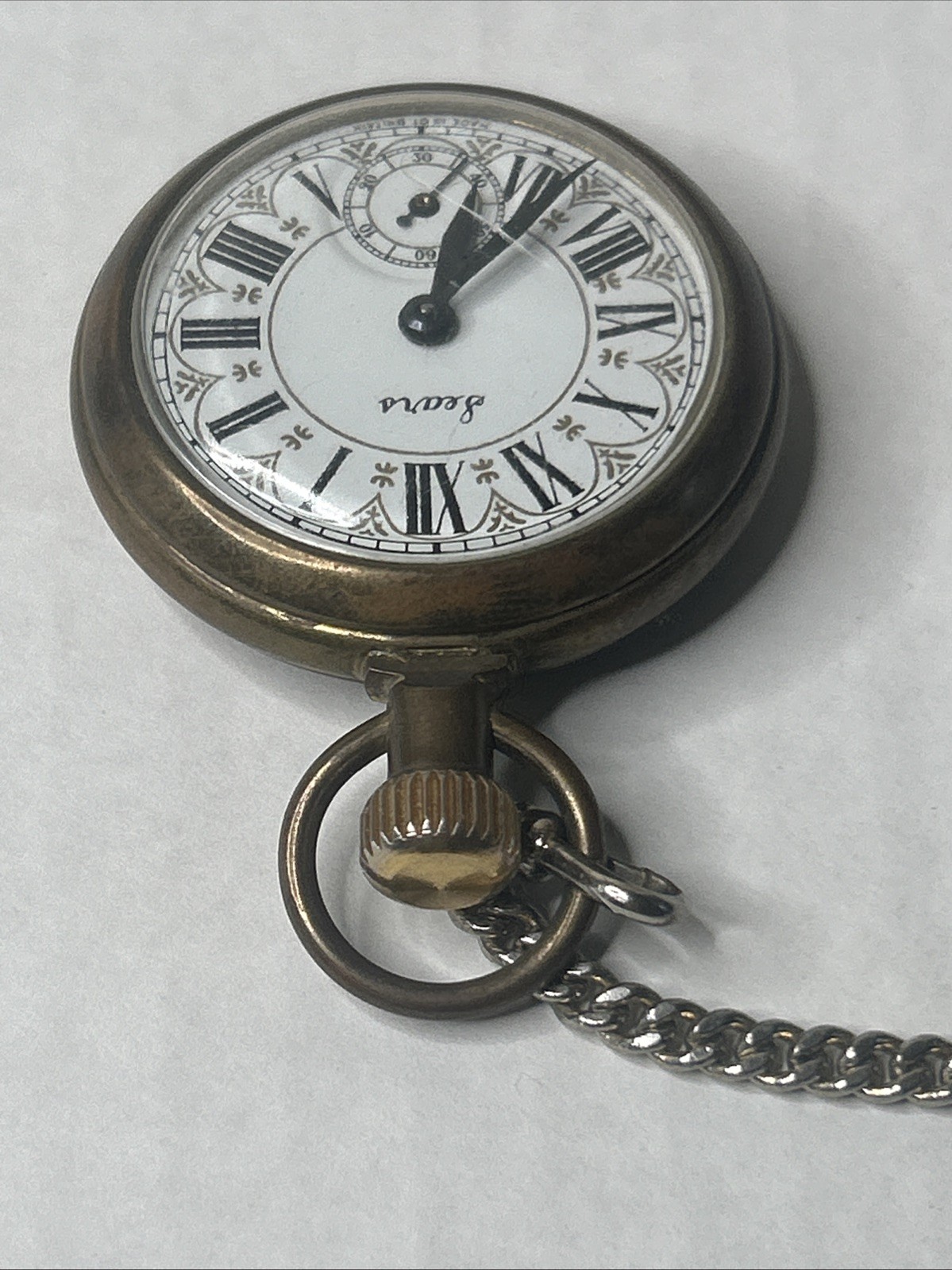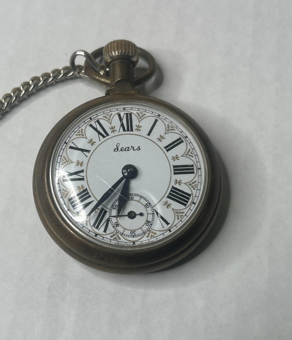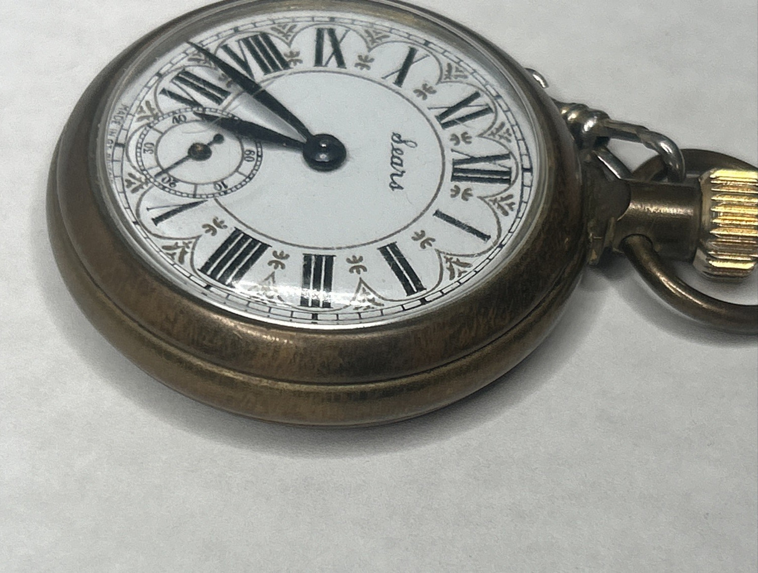 VINTAGE SEARS MECHANICAL WIND UP BRASS POCKET WATCH RAILROAD TRAIN LOCOMOTIVE
