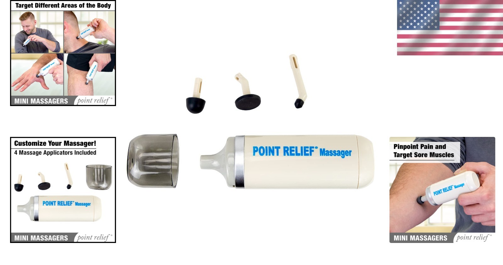 Handheld Mini Massager for Instant Muscle Relief - Four Versatile Massage Heads