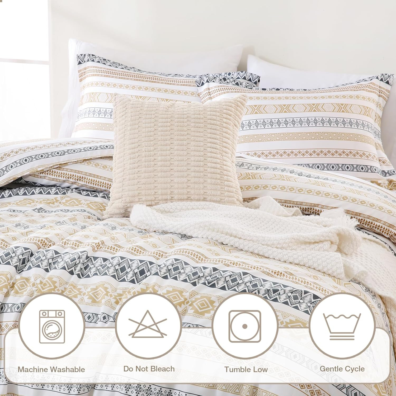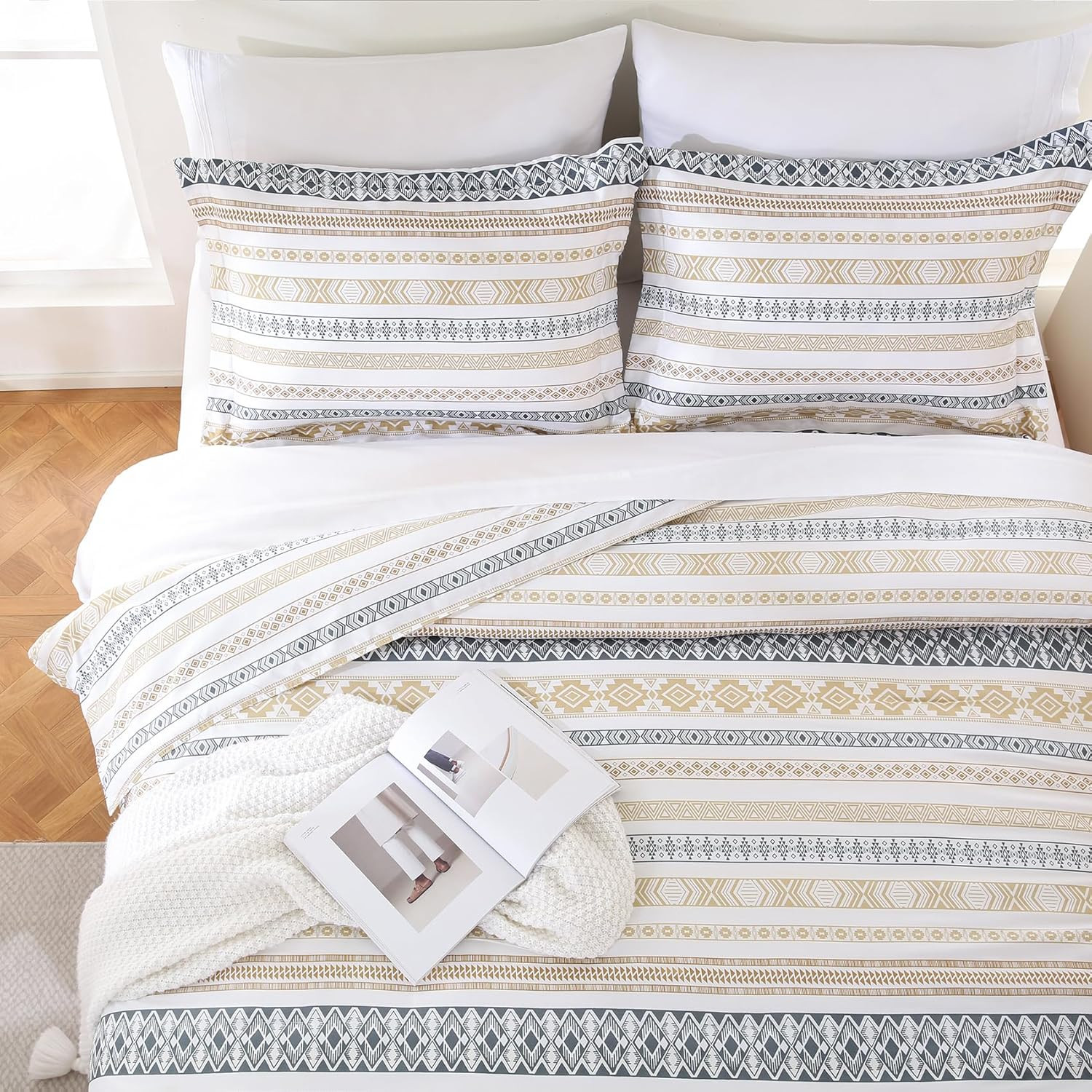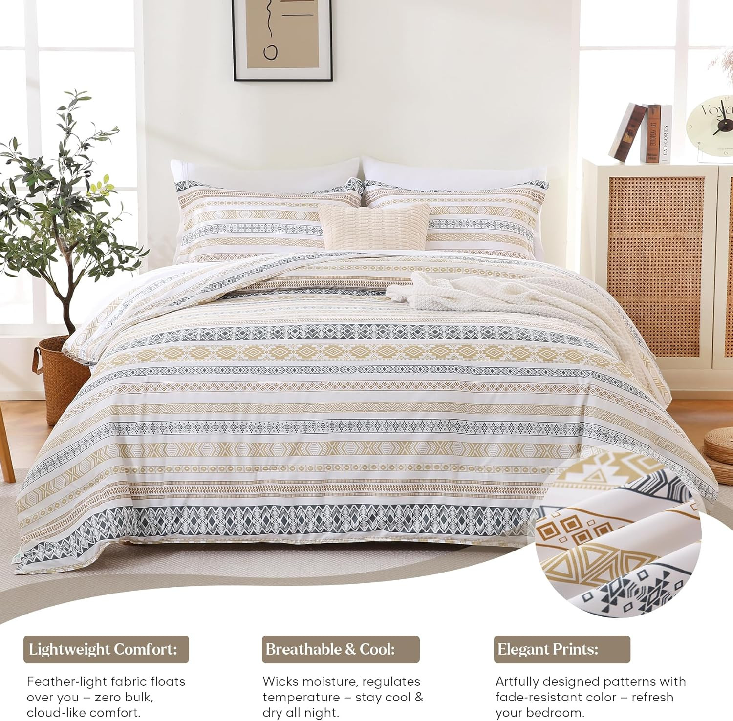 Queen Comforter Set, Lightweight Summer Bedding Comforter Sets, Boho Striped Pat