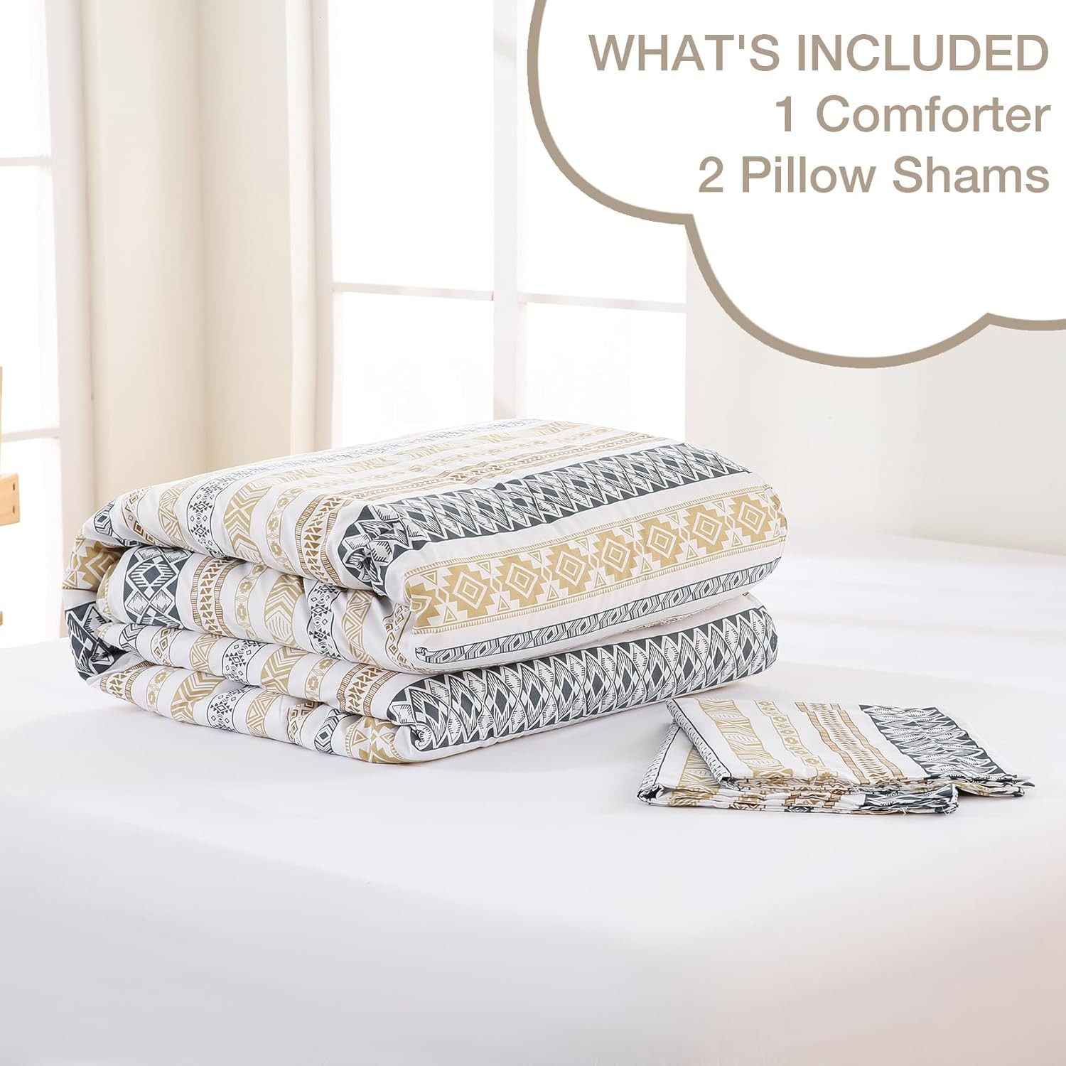 Included Components: 1 comforter and 2 pillow shams
