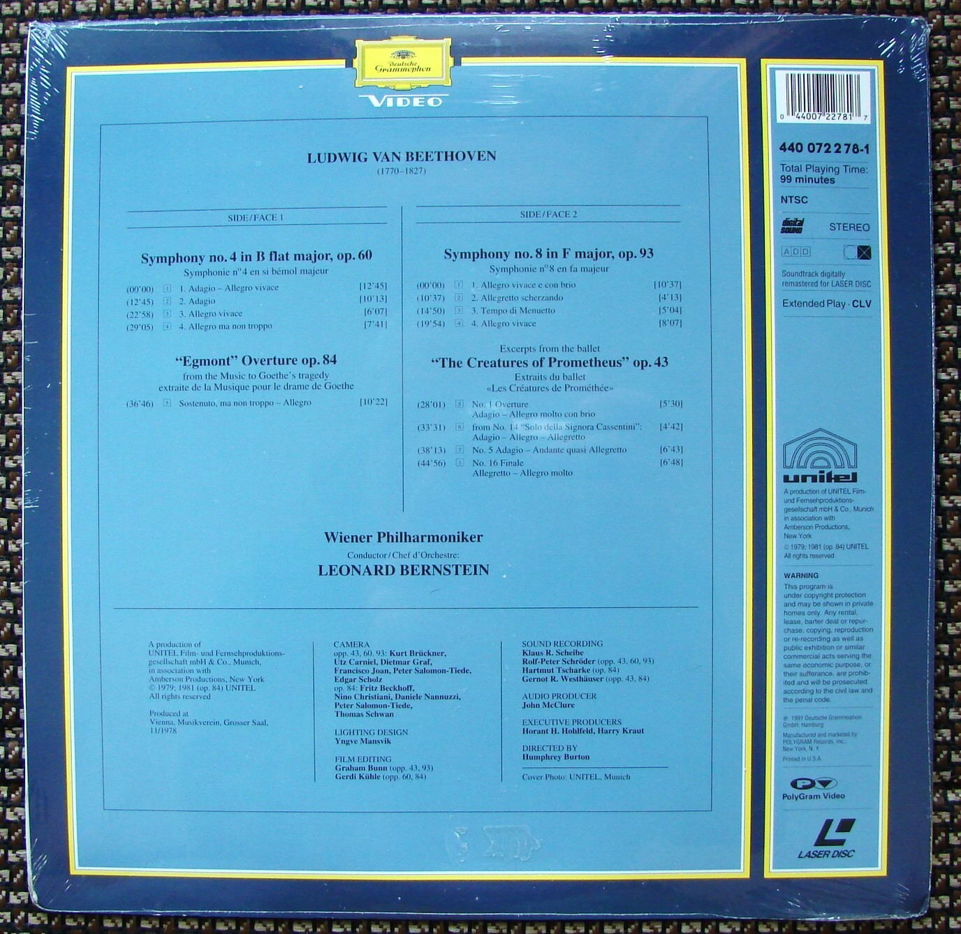 BEETHOVEN Symphony Nos. 4 8 Egmont Overture Prometheus Ballet LASERDISC New