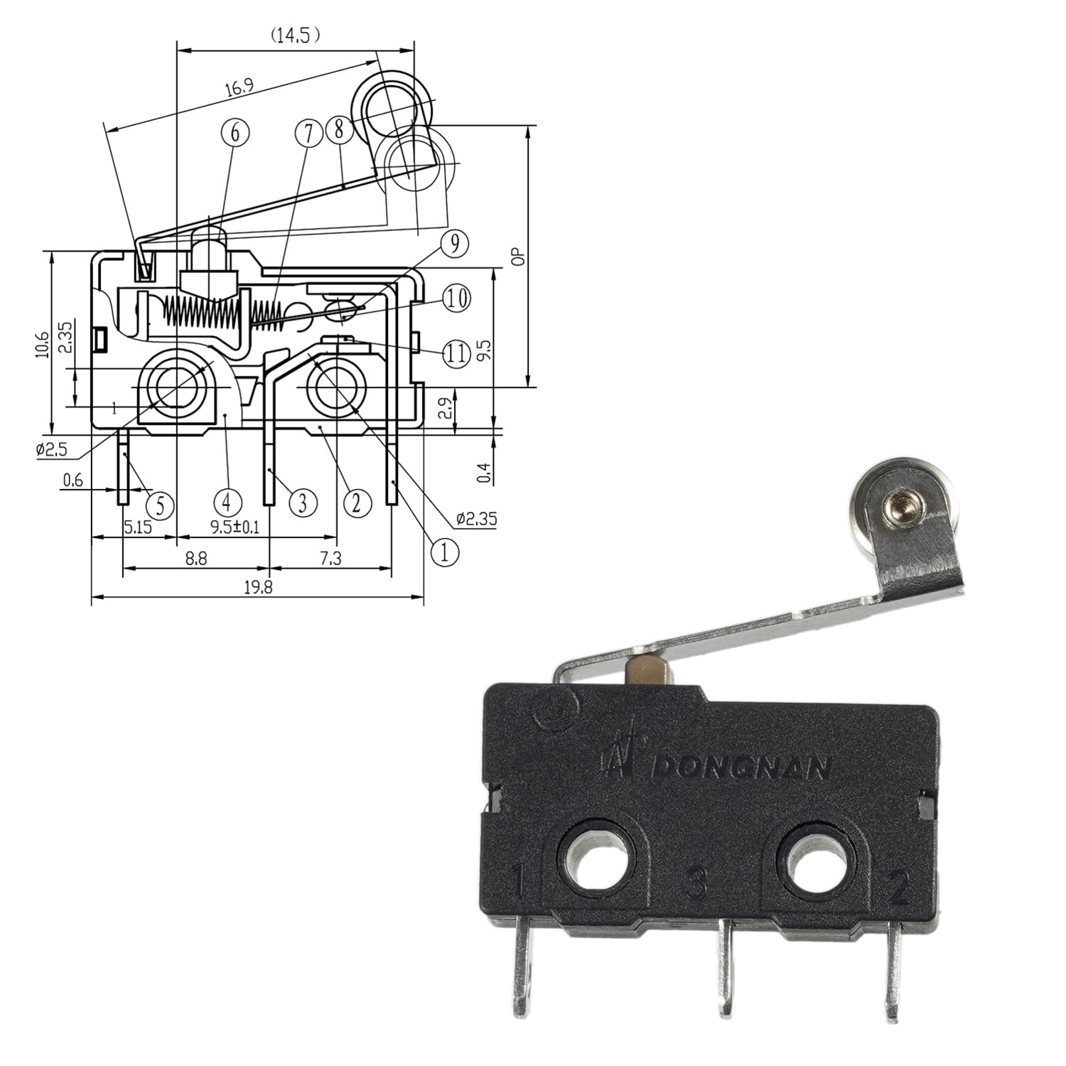 Micro Limit Switch with Momentary Roller Lever Arm SPDT 1NO 1NC 3 Pins 5A 125...