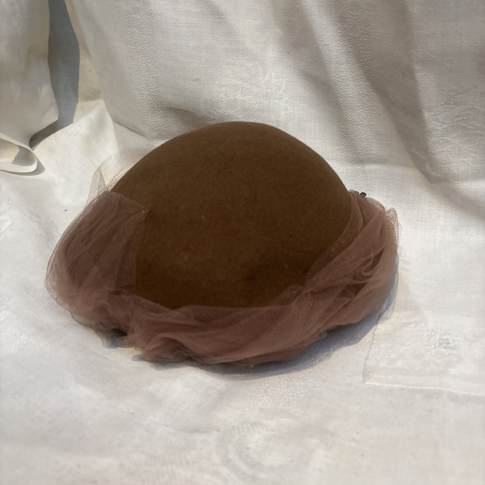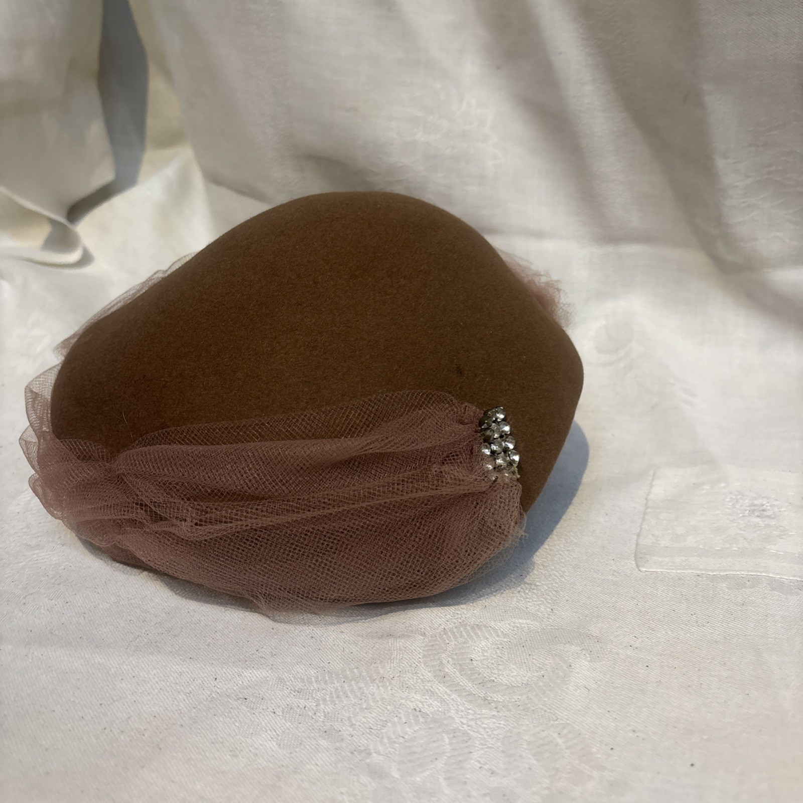 1950 s Vintage Ladies Pillbox Hat With Netting Rhinestone Detail