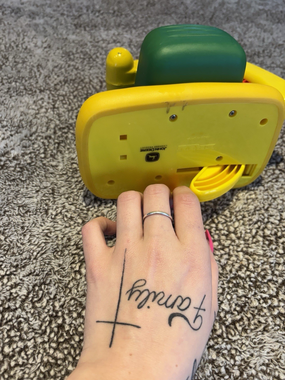 Pull String John Deer play circular saw makes for noise of a saw