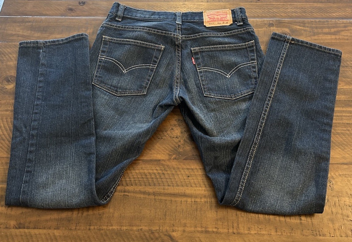 как выглядит Levis 511 Slim Fit Jeans Boys Size 16 Regular Dark Blue Flex Denim 28x28 фото
