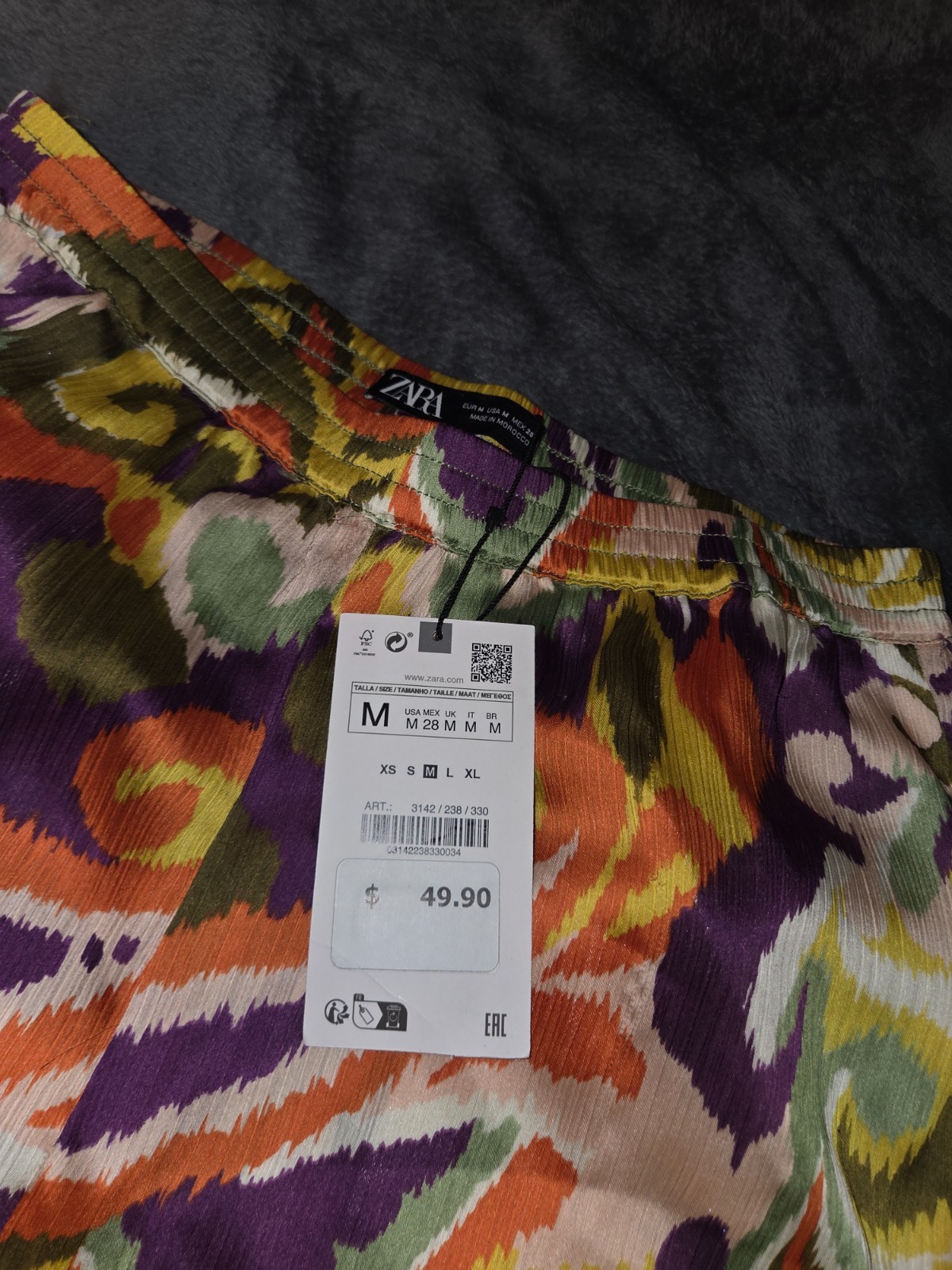 как выглядит ZARA MULTICOLOR PRINTED STRAIGHT CUT TROUSERS PANTS SIZE M фото