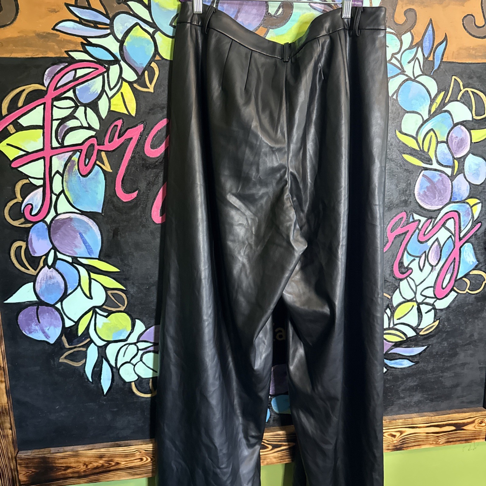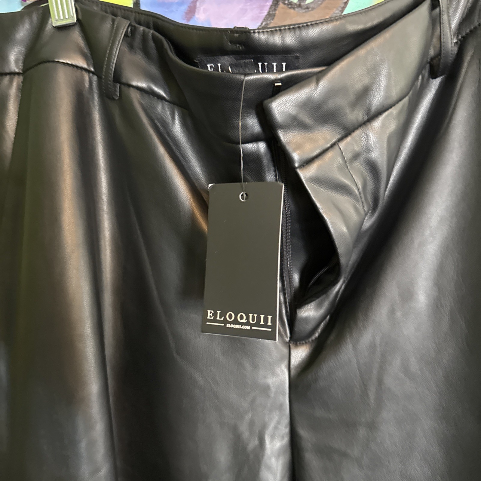 как выглядит Eloquii Faux Leather Wide Leg Pants, Black, Size 14 фото