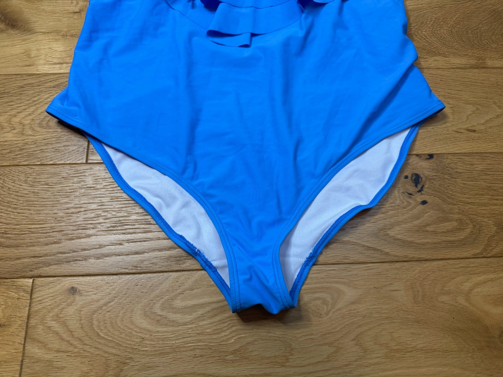 как выглядит Matalan Swimming Costume Size 16 Blue Padded Frill Detail Low Back Swimsuit фото