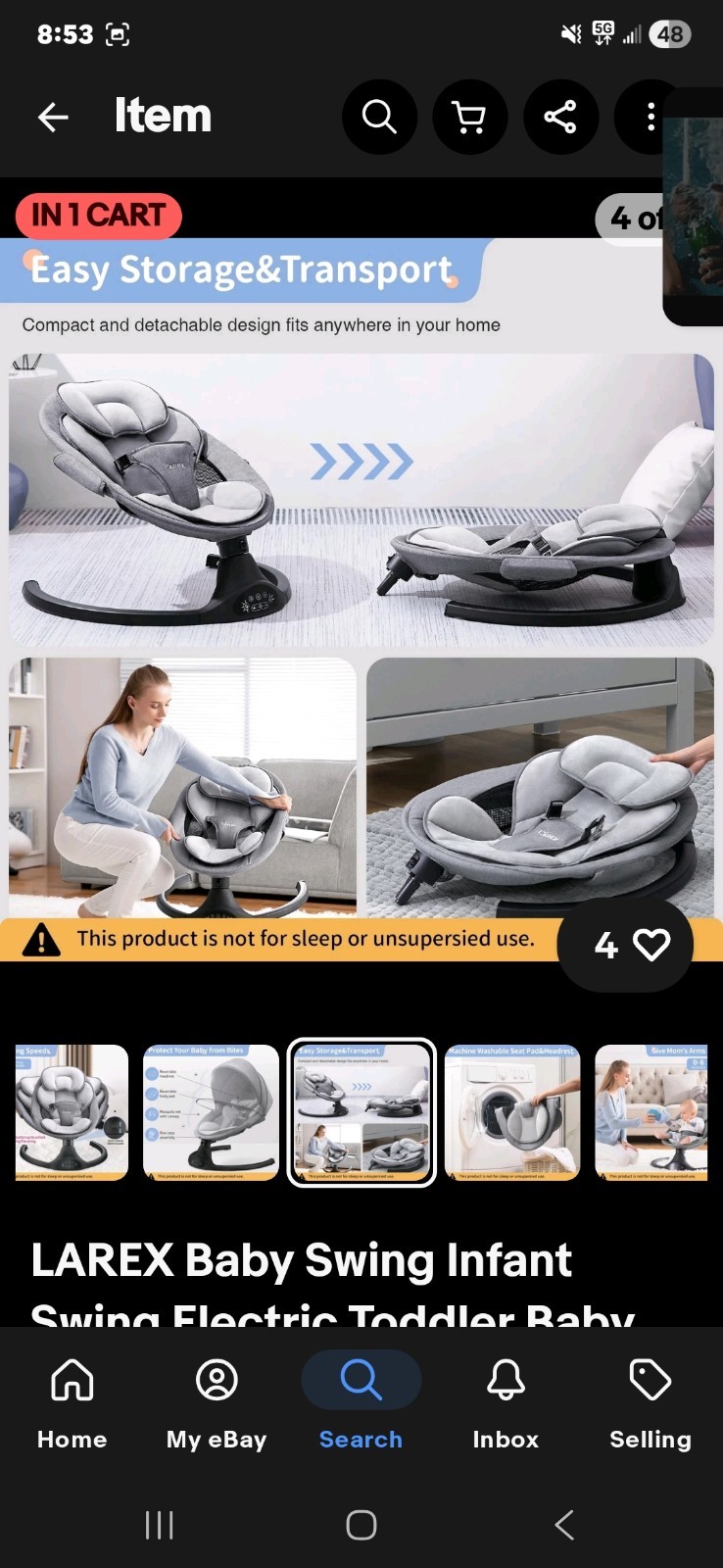 как выглядит LAREX Baby Swing Infant Swing Electric Toddler Baby Rocker Portable for Newborn фото