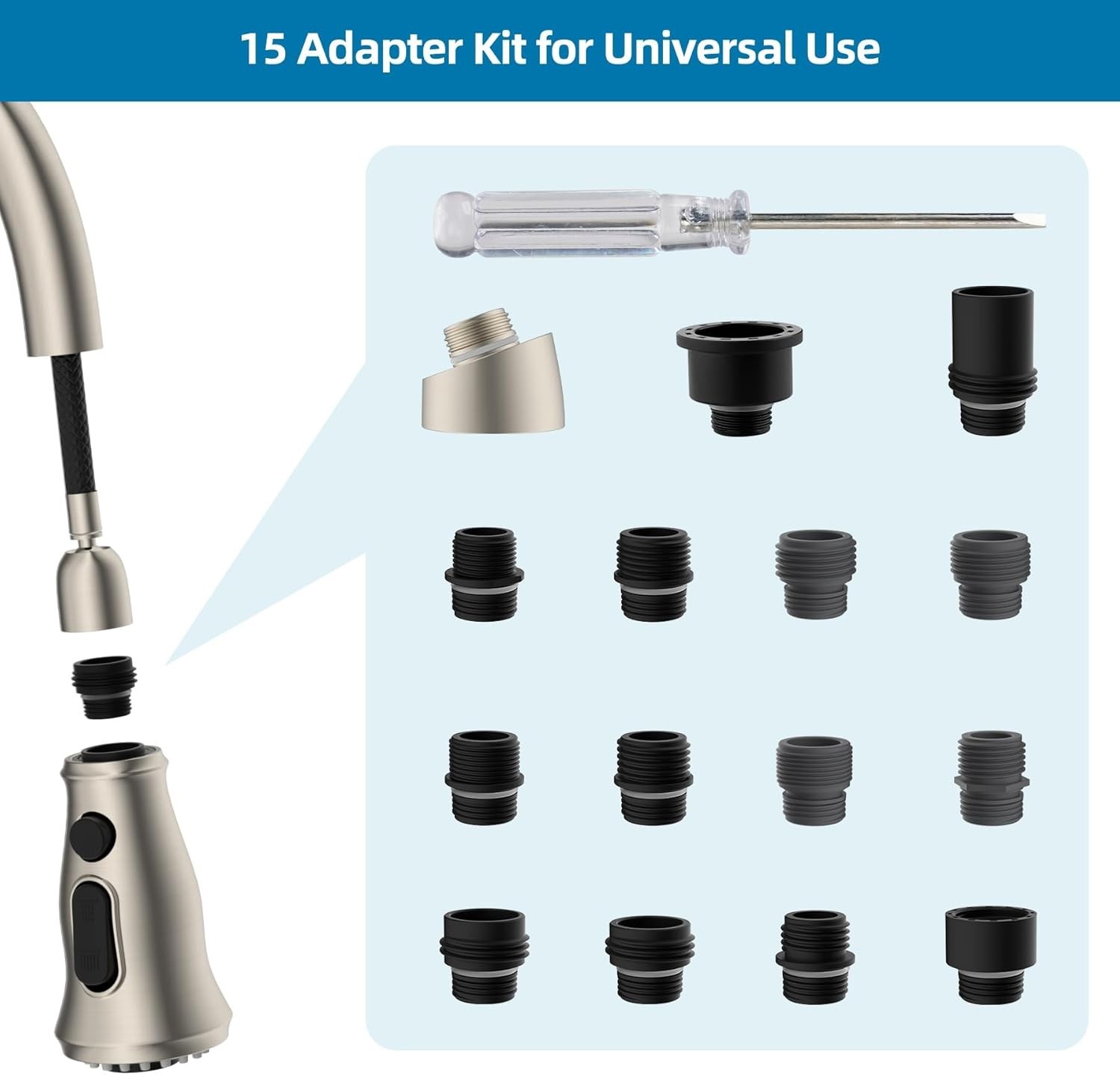 Repuesto de cabezal rociador extra ble para grifo de cocina con 15 adaptadores,