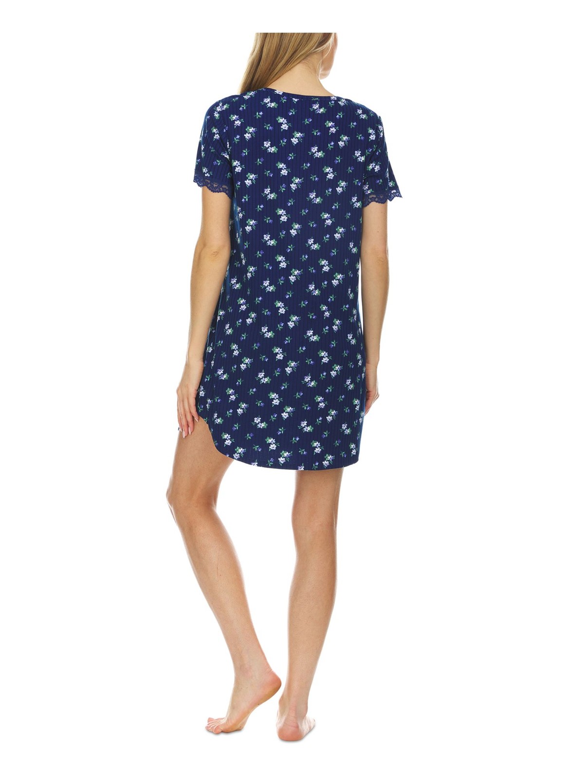 как выглядит FLORA Intimates Navy Lace Trim Floral Nightgown Juniors L фото