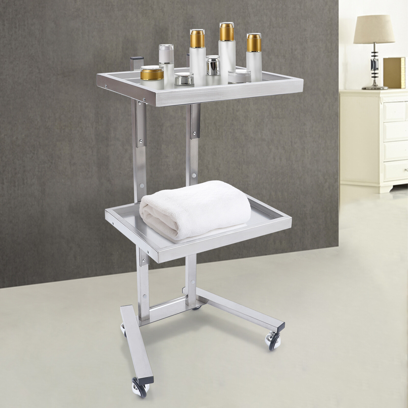Stainless Steel Trolley Cart 2 Tier Hair Salon Tattoo Medical Tray Cart Silver