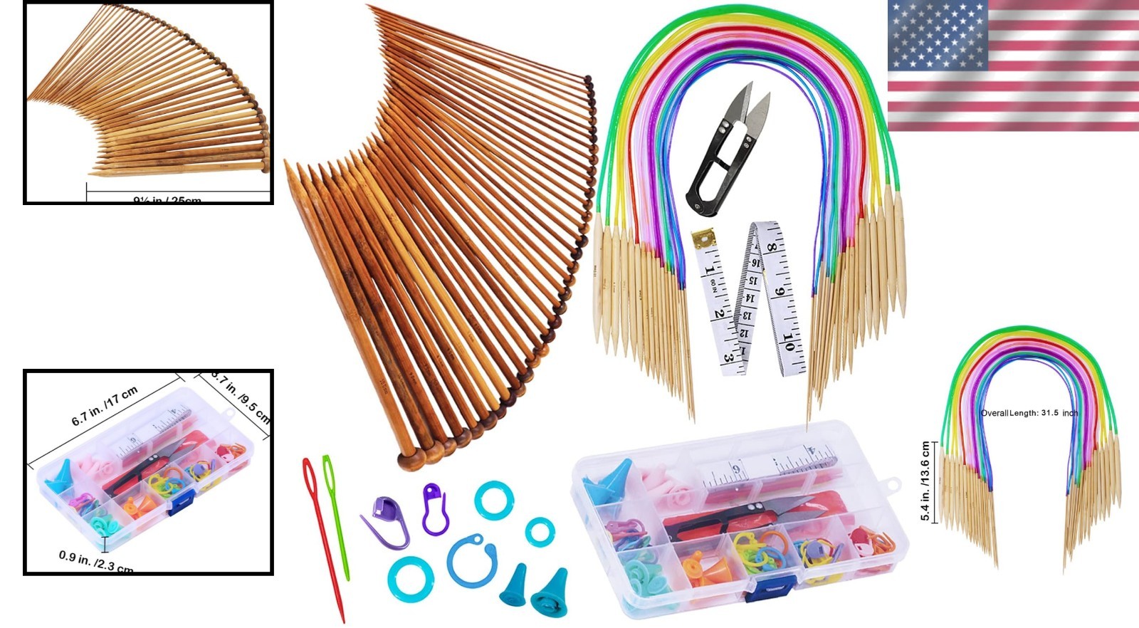 Complete Bamboo Knitting Needles Set: 18 Circular 36 Single Pointed Needles
