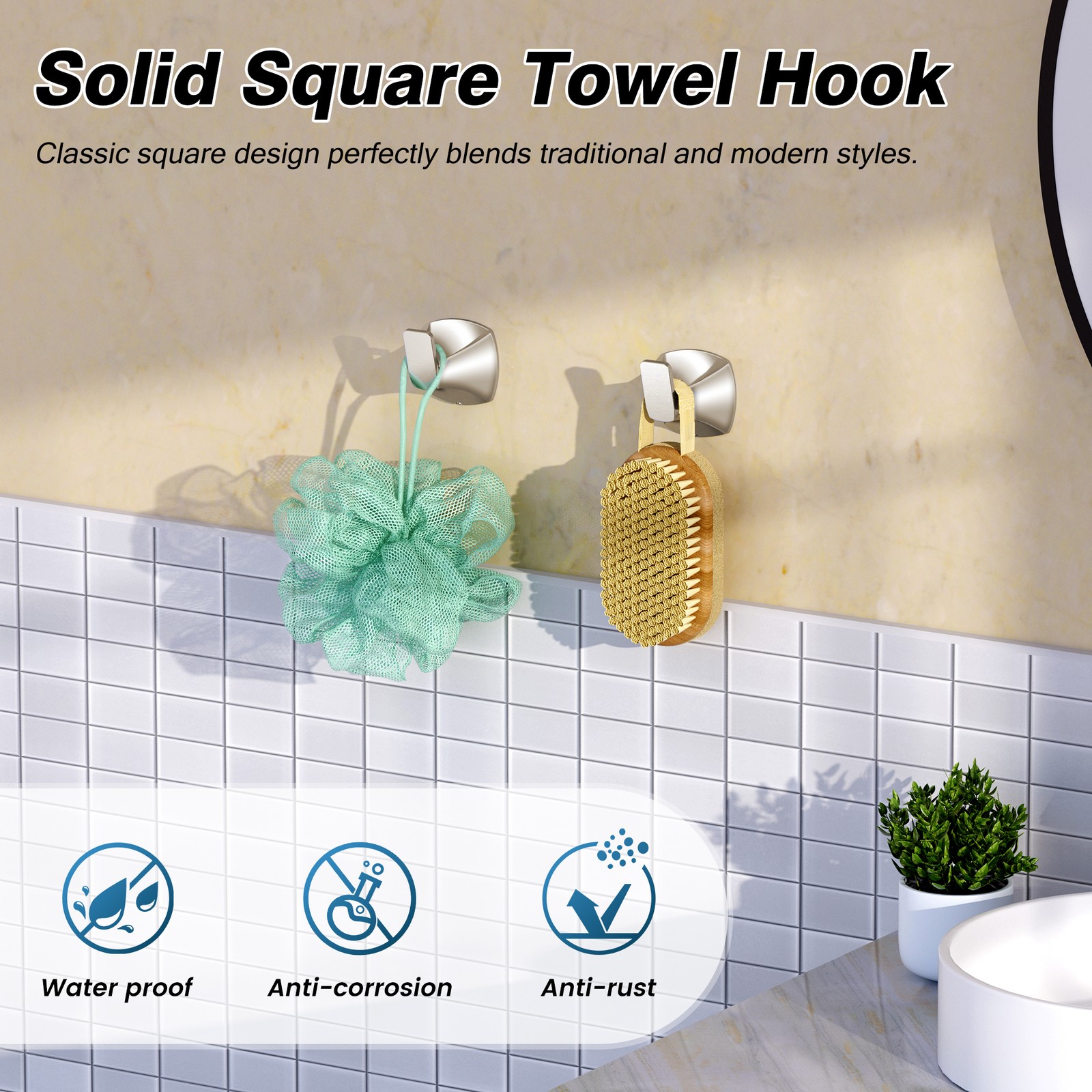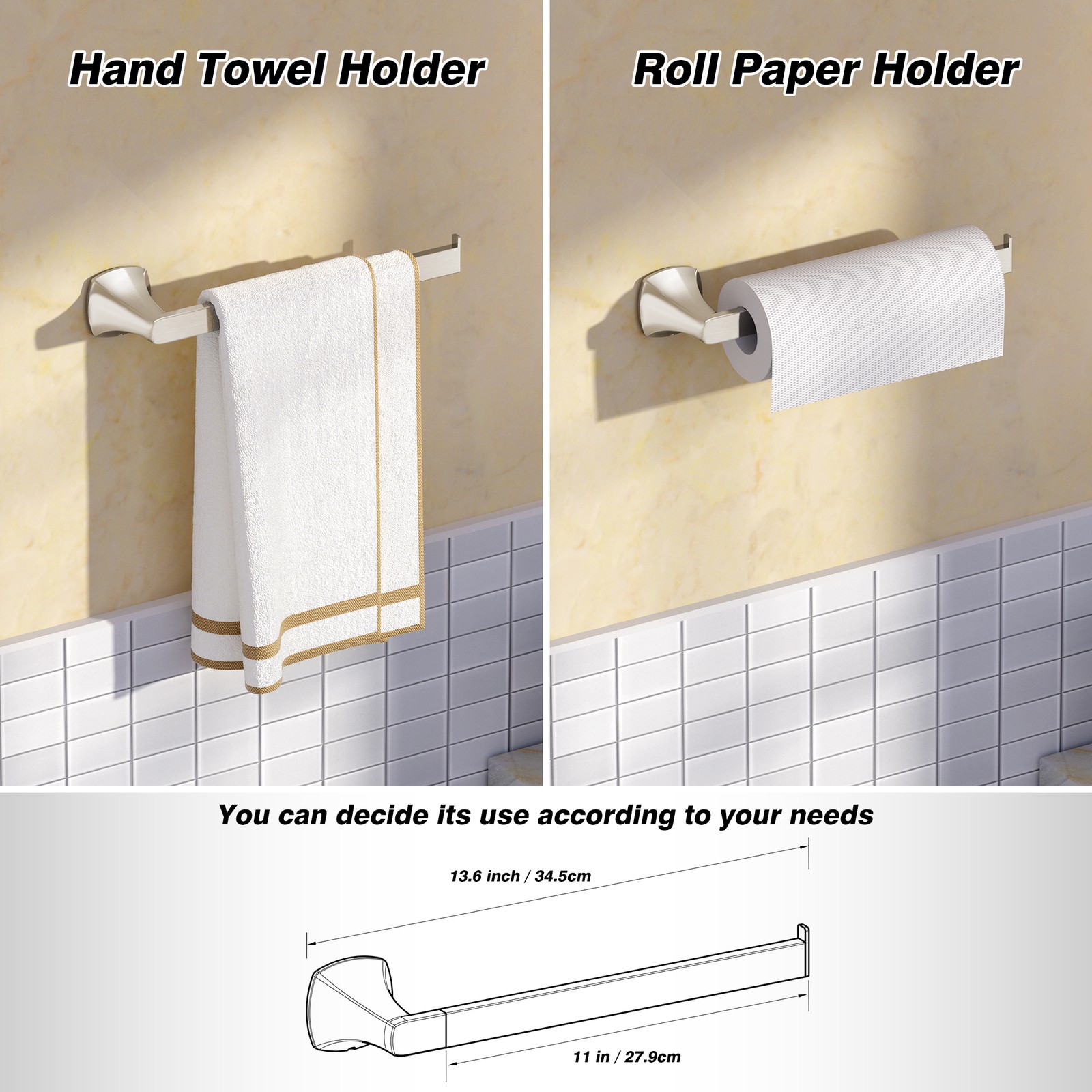 Set Includes: 18 Inch Towel Bar, Towel Ring, 2 Pieces Robe Hook, Toilet Paper Holder