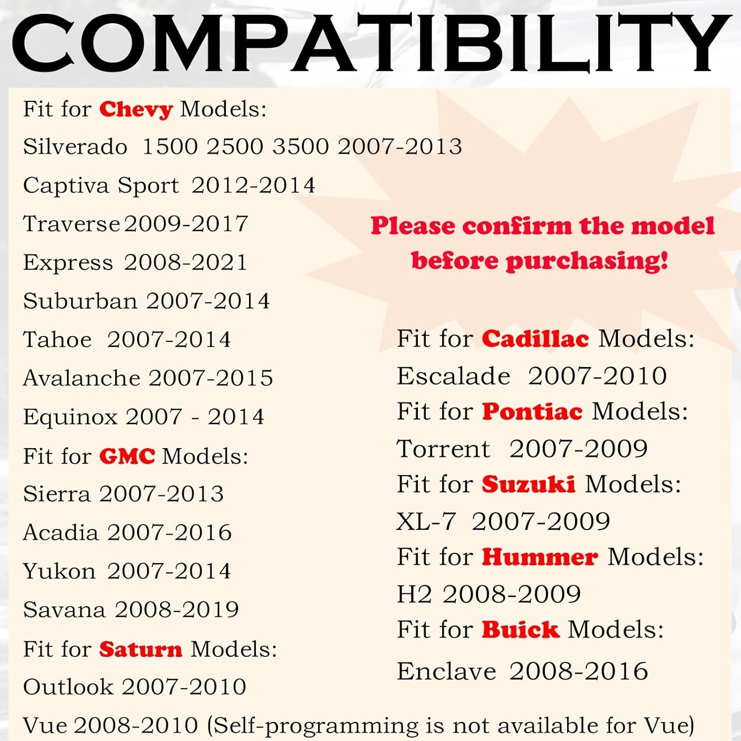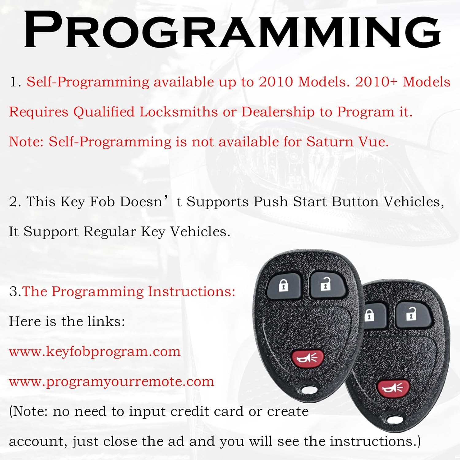 Remote Key Fob Replacement Fits for 1500 2500 Tahoe Suburban Avalanche Equinox S
