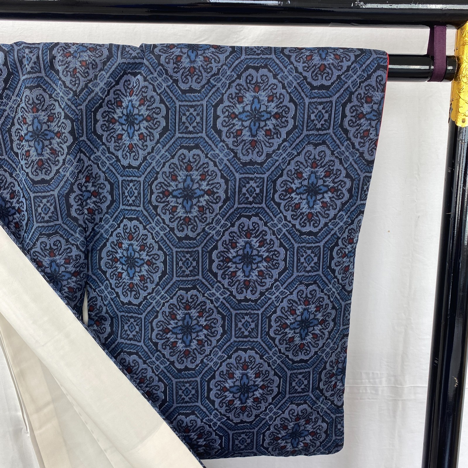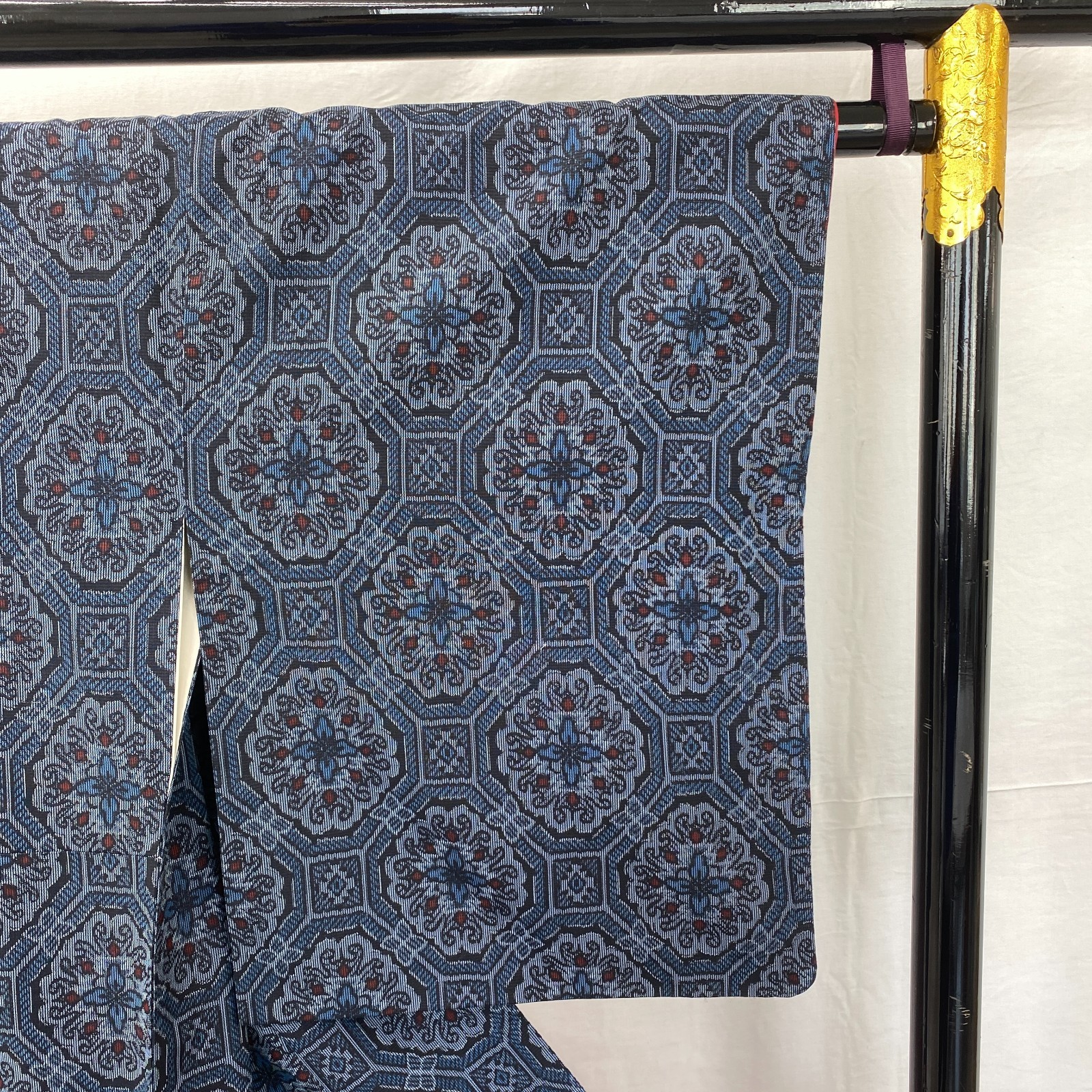 как выглядит Japanese Vintage Kimono Silk Blue Oshima Tumugi Traditional Authentic Length62in фото