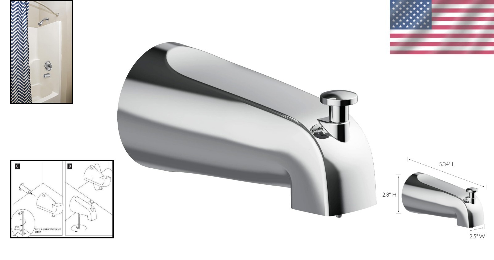 Effortless Installation Polished Chrome Tub Diverter Spout - 5-