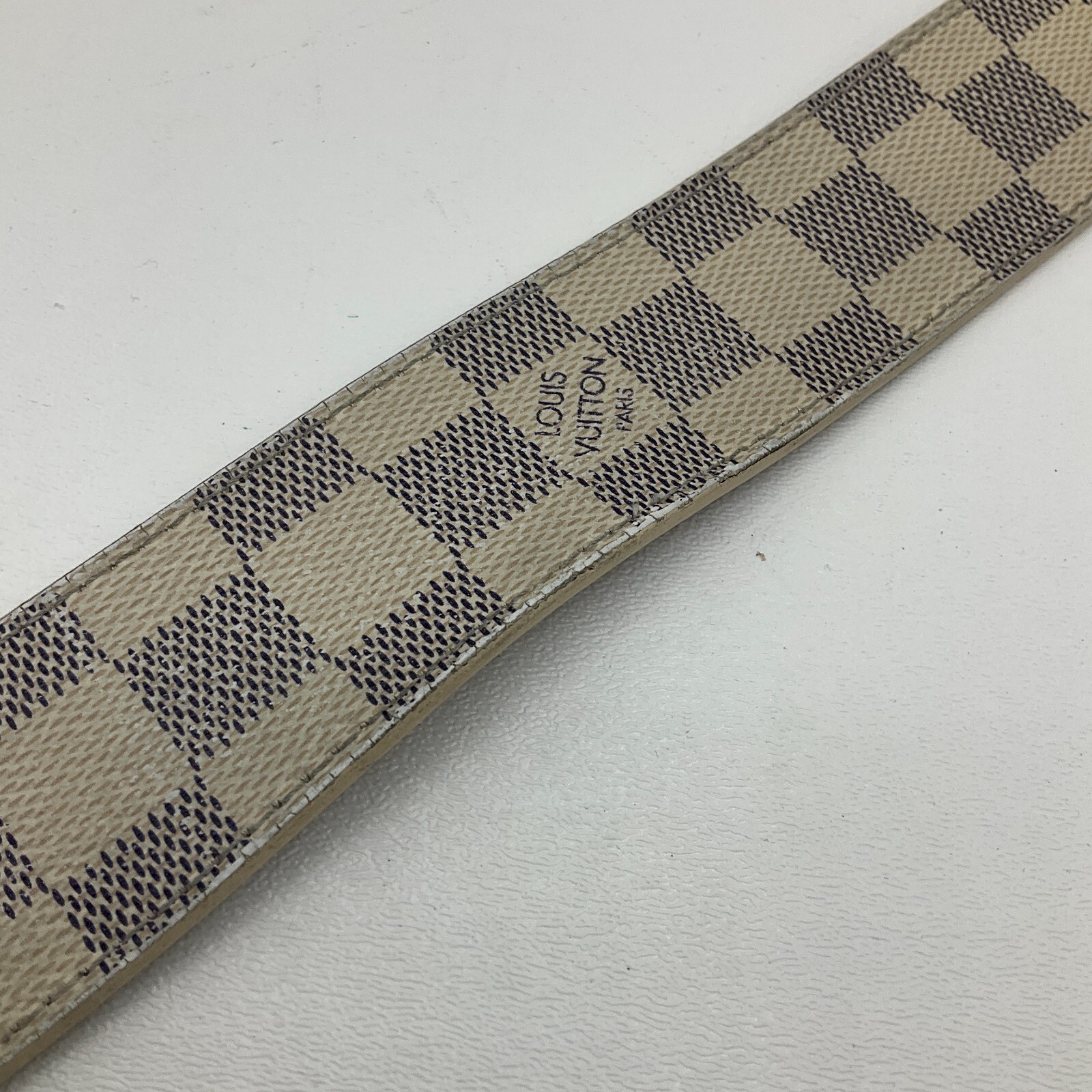 как выглядит Louis Vuitton M9609 Damier Azur Canvas Belt LV Initial Gold Belt Buckle 90/36 фото