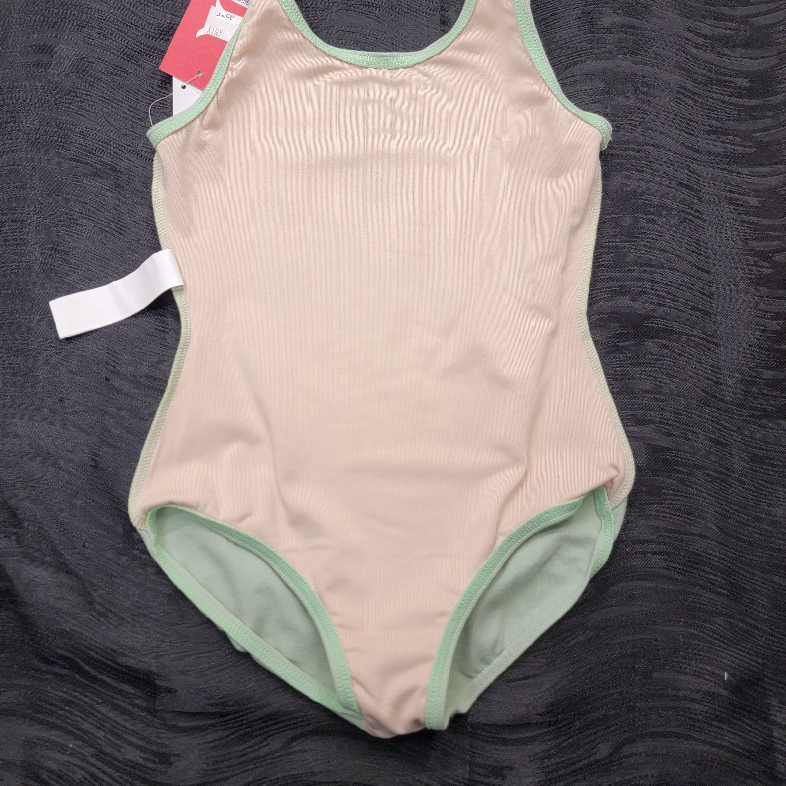 Capezio Green High-Neck Tank Leotard With Ballet Lines SZ. Medium Child