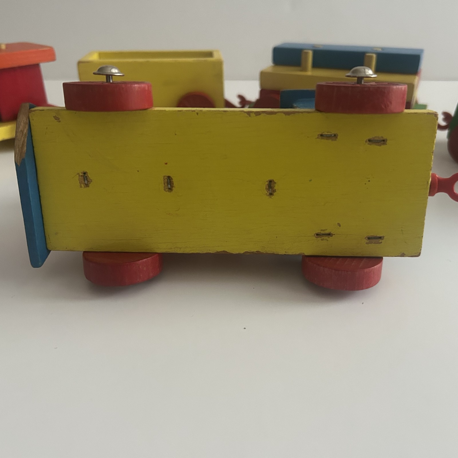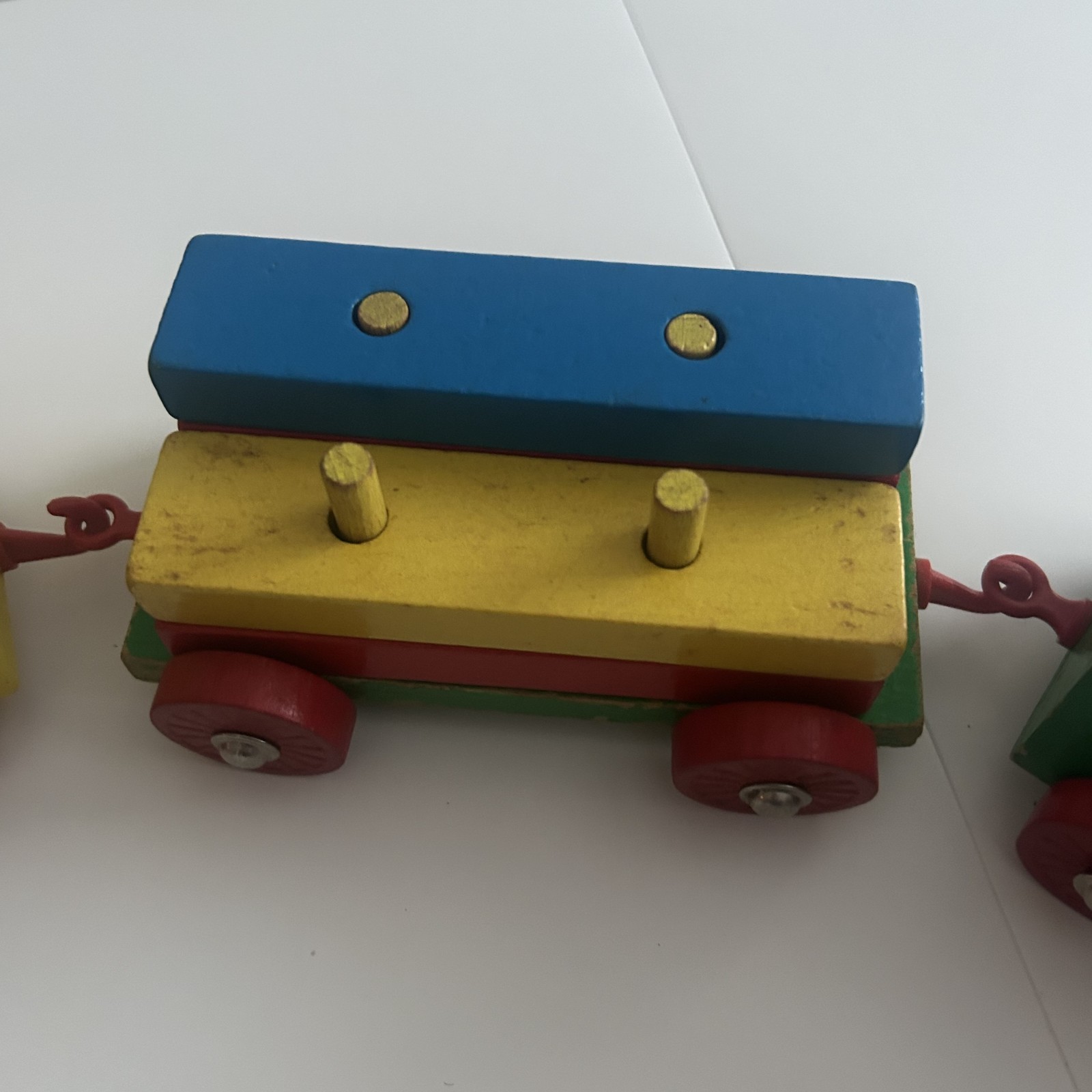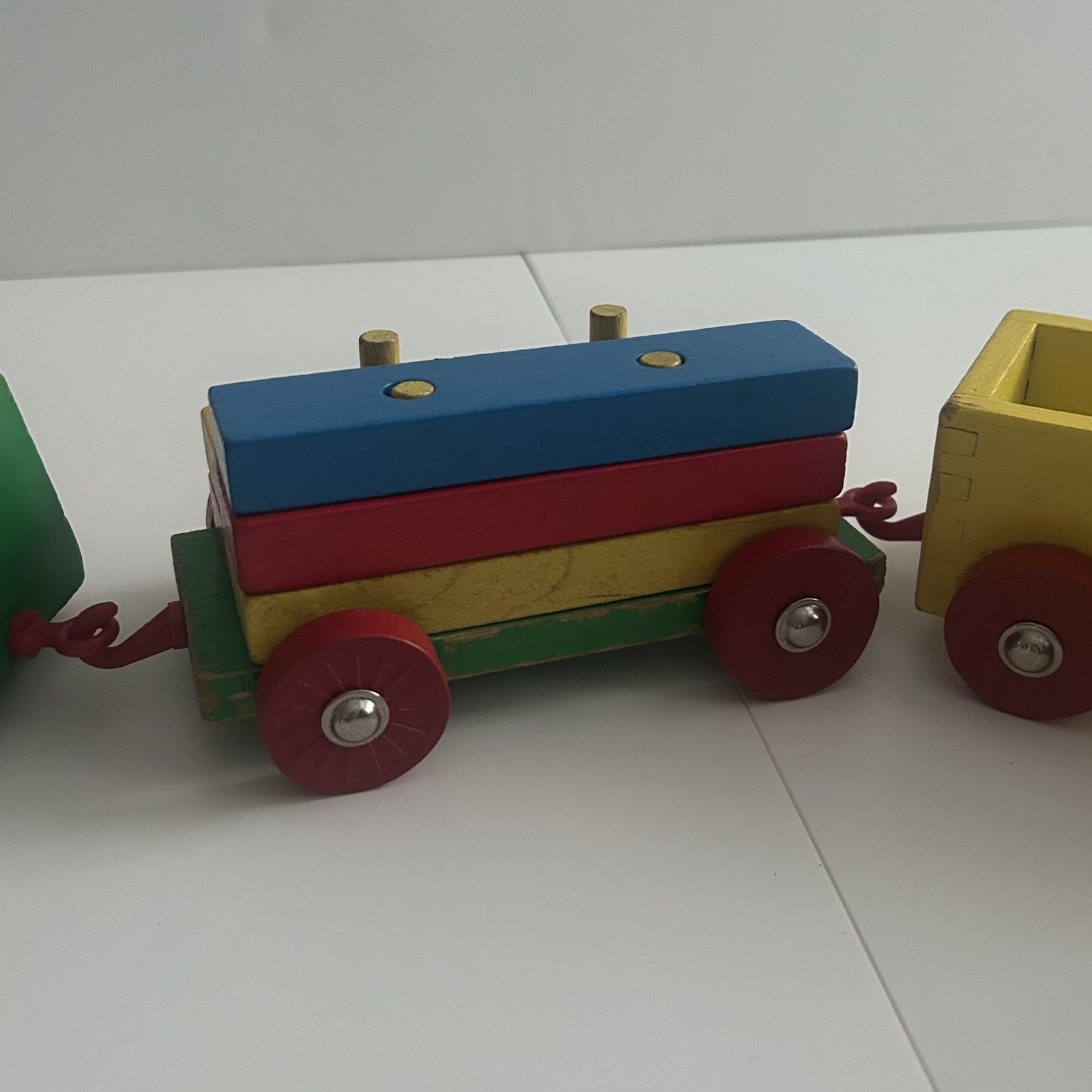 как выглядит Vintage Wooden Train Set 1980s 5 Piece set with colorful stackable blocks фото