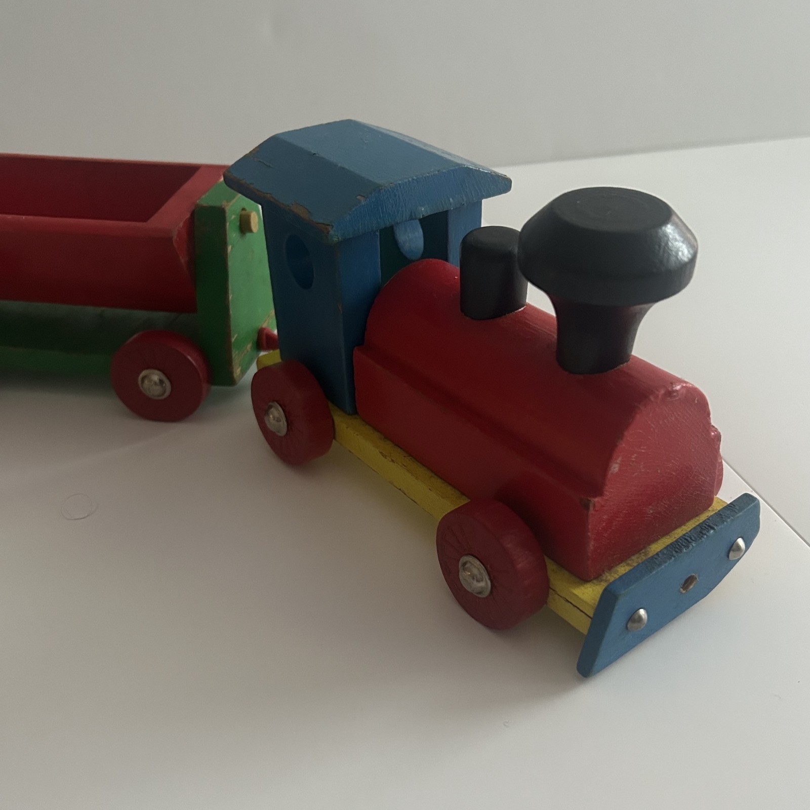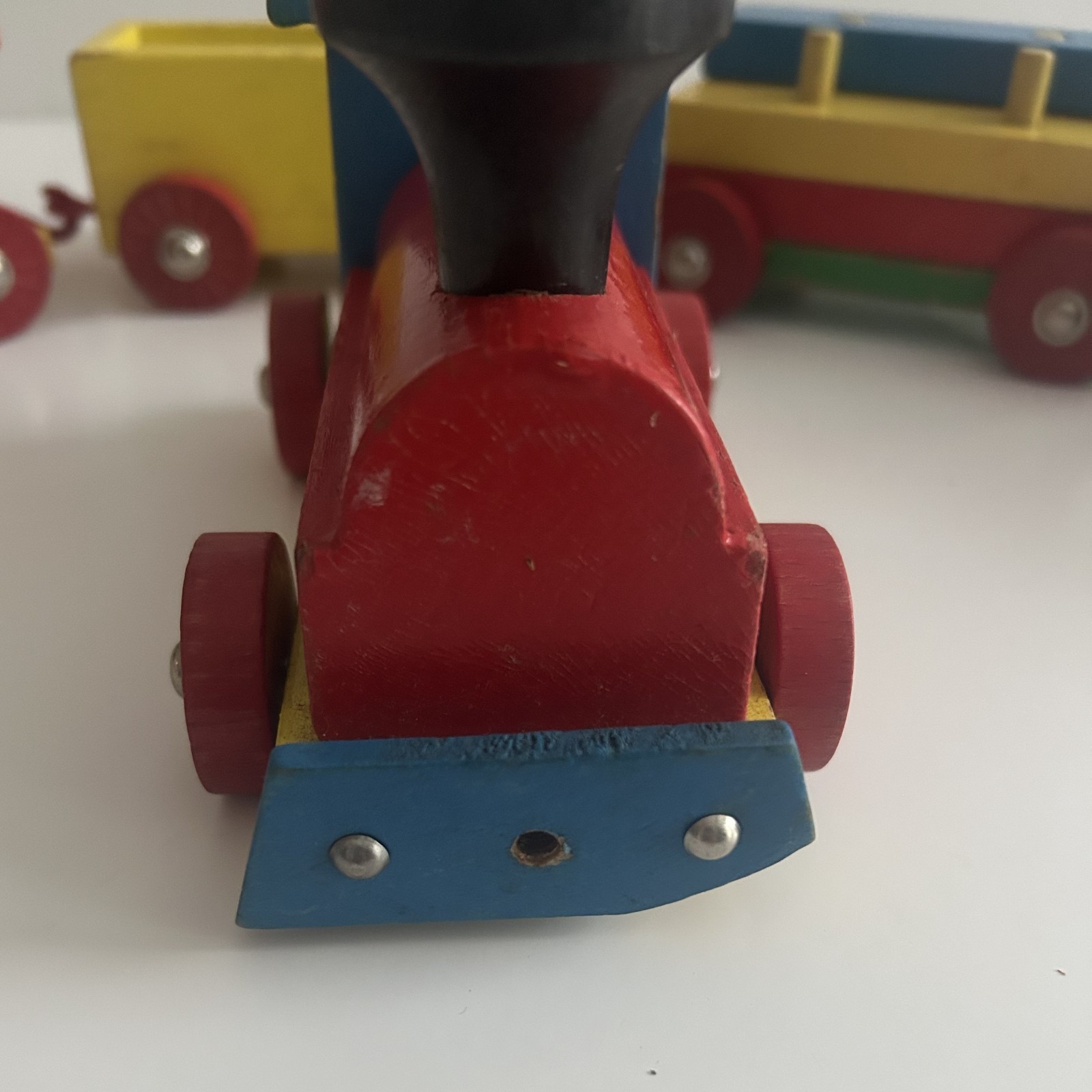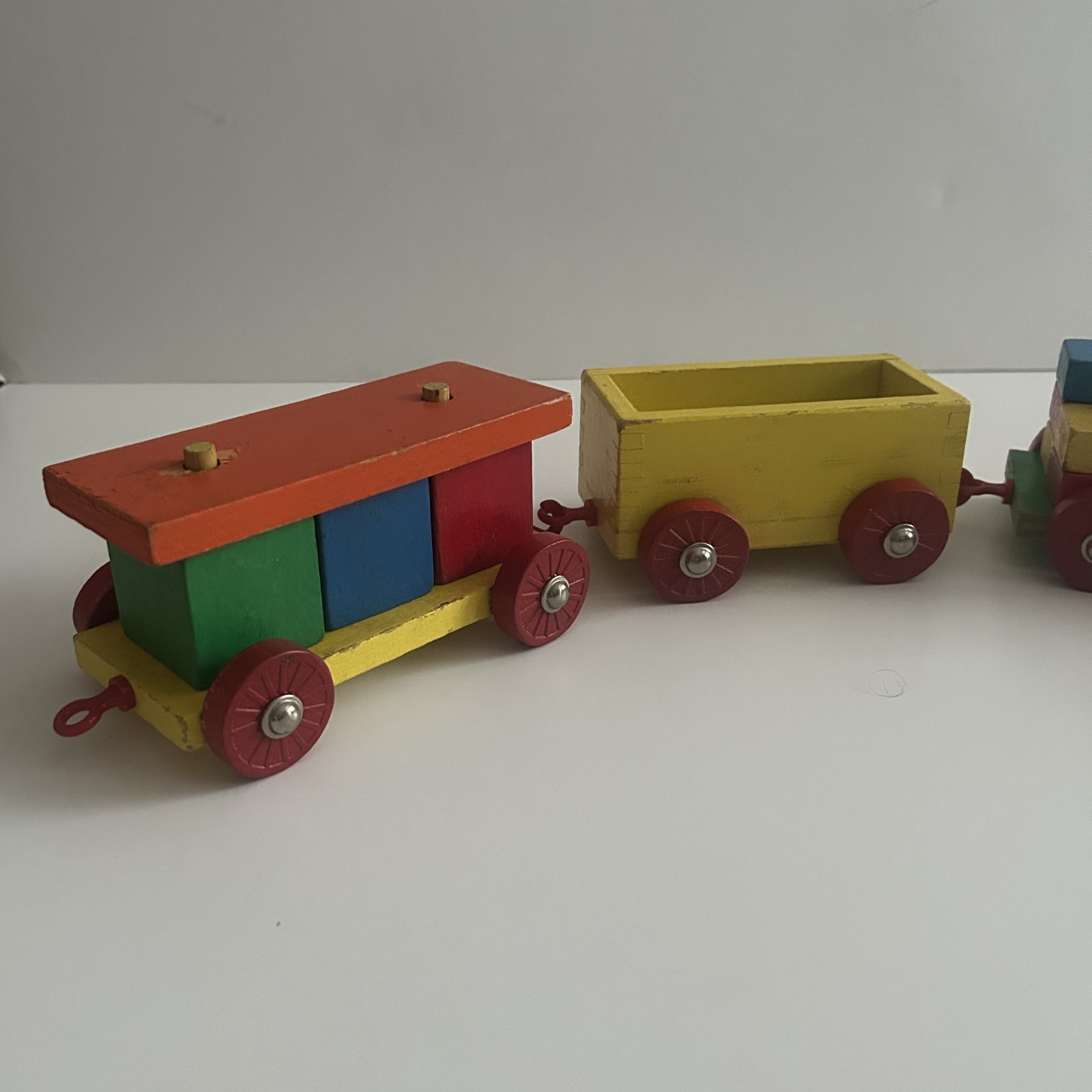 Vintage Wooden Train Set 1980s 5 Piece set with colorful stackable blocks