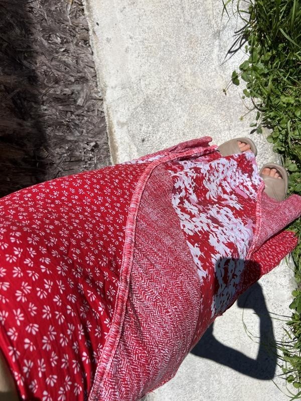 как выглядит Vintage Red Floral Patchwork Maxi Skirt Size M фото