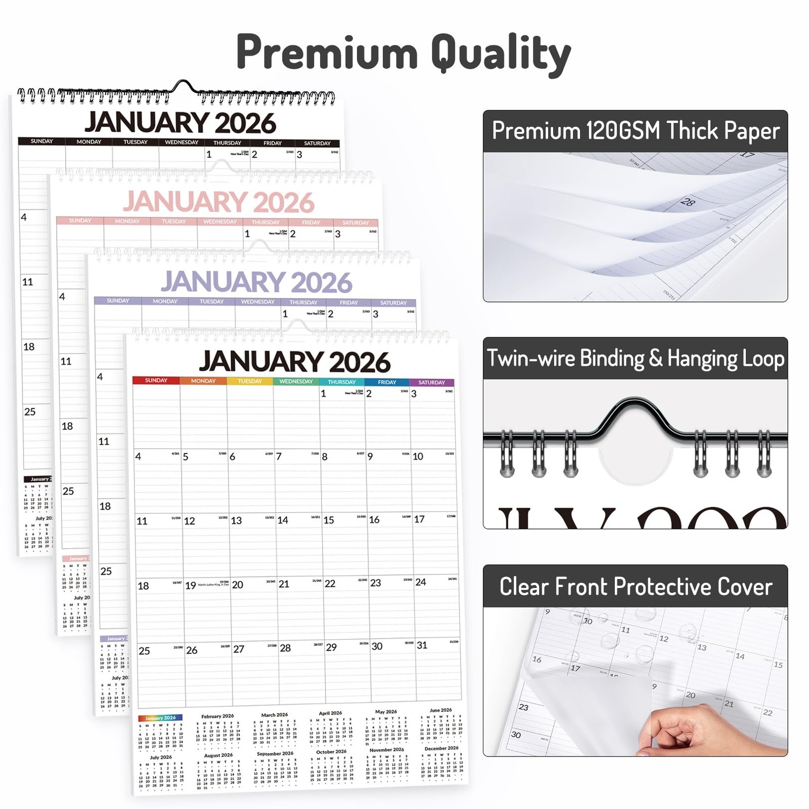 • 2026 Wall Calendar Large 12x17in 18 Month Vertical Spiral Stickers Family Office