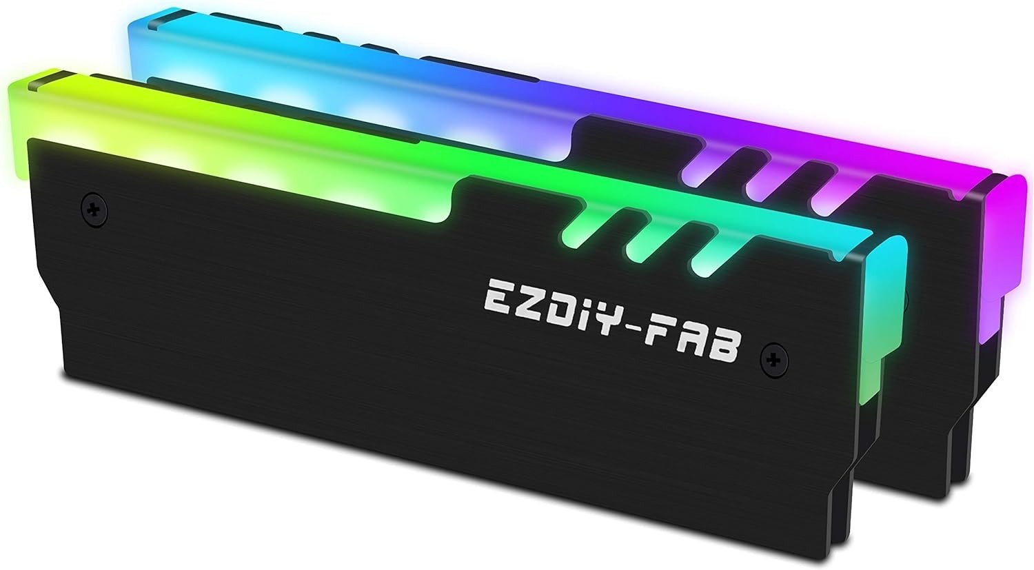 ARGB DDR Memory Cooler with Easy Installation - 2 Pack Available, Black Finish
