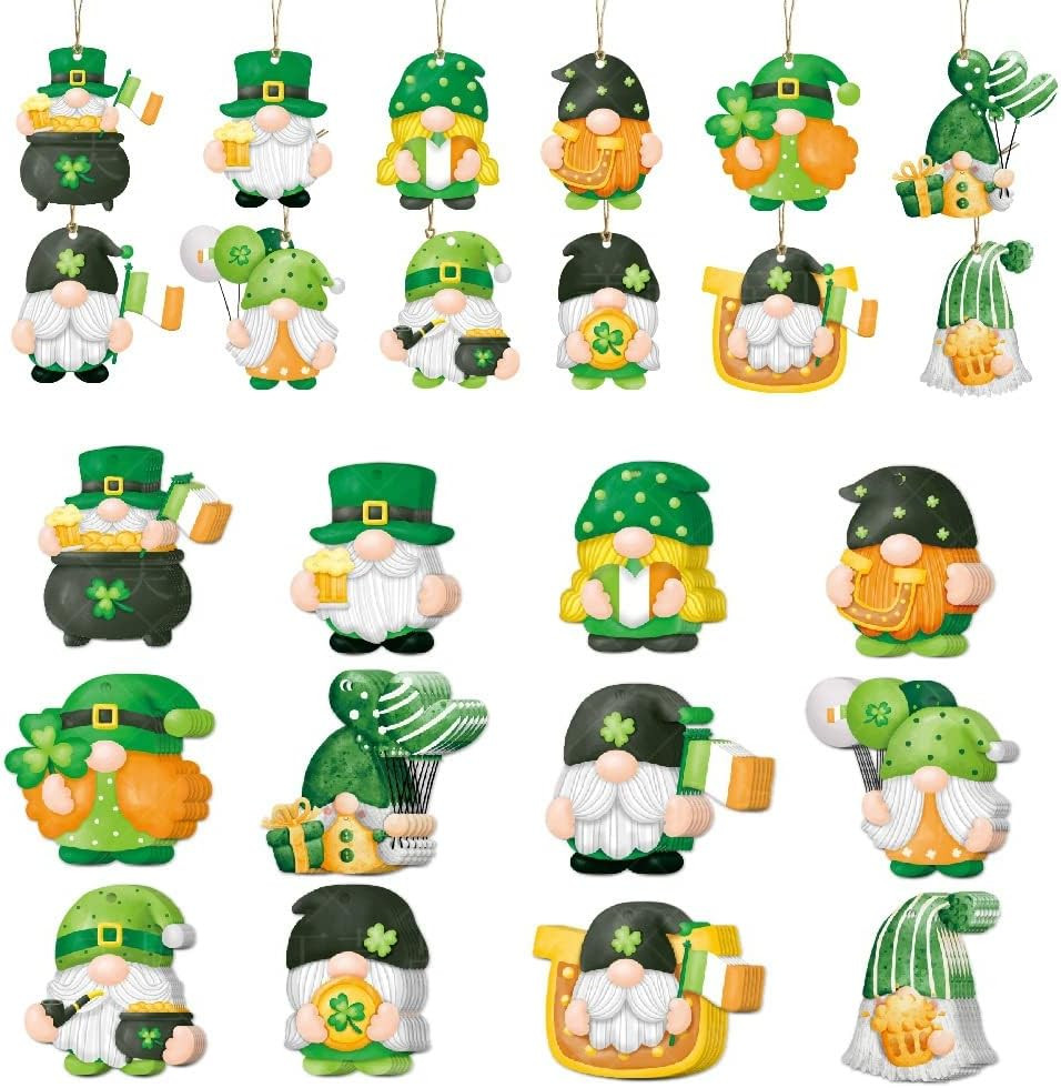 St. Patrick'S Day Gnome Ornaments Decorations 24 PCS Irish Gnome Shamrock Hangin
