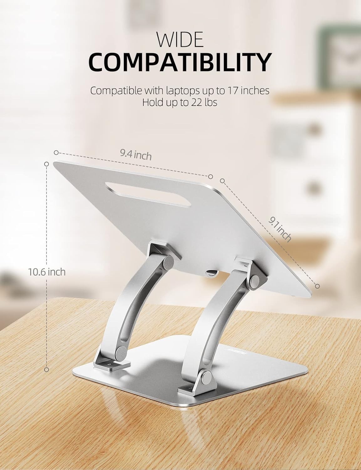Heavy-Duty Ergonomic Laptop Holder - Silver Adjustable Stand Fits 10-17 Laptops