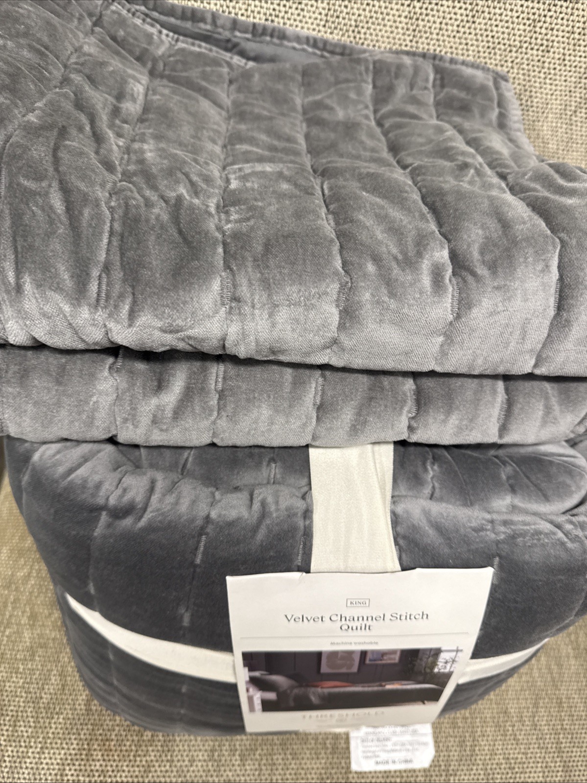 King Quilt 2 Standard Pillowcases Threshold Stitch Channel Velvet Charcoal