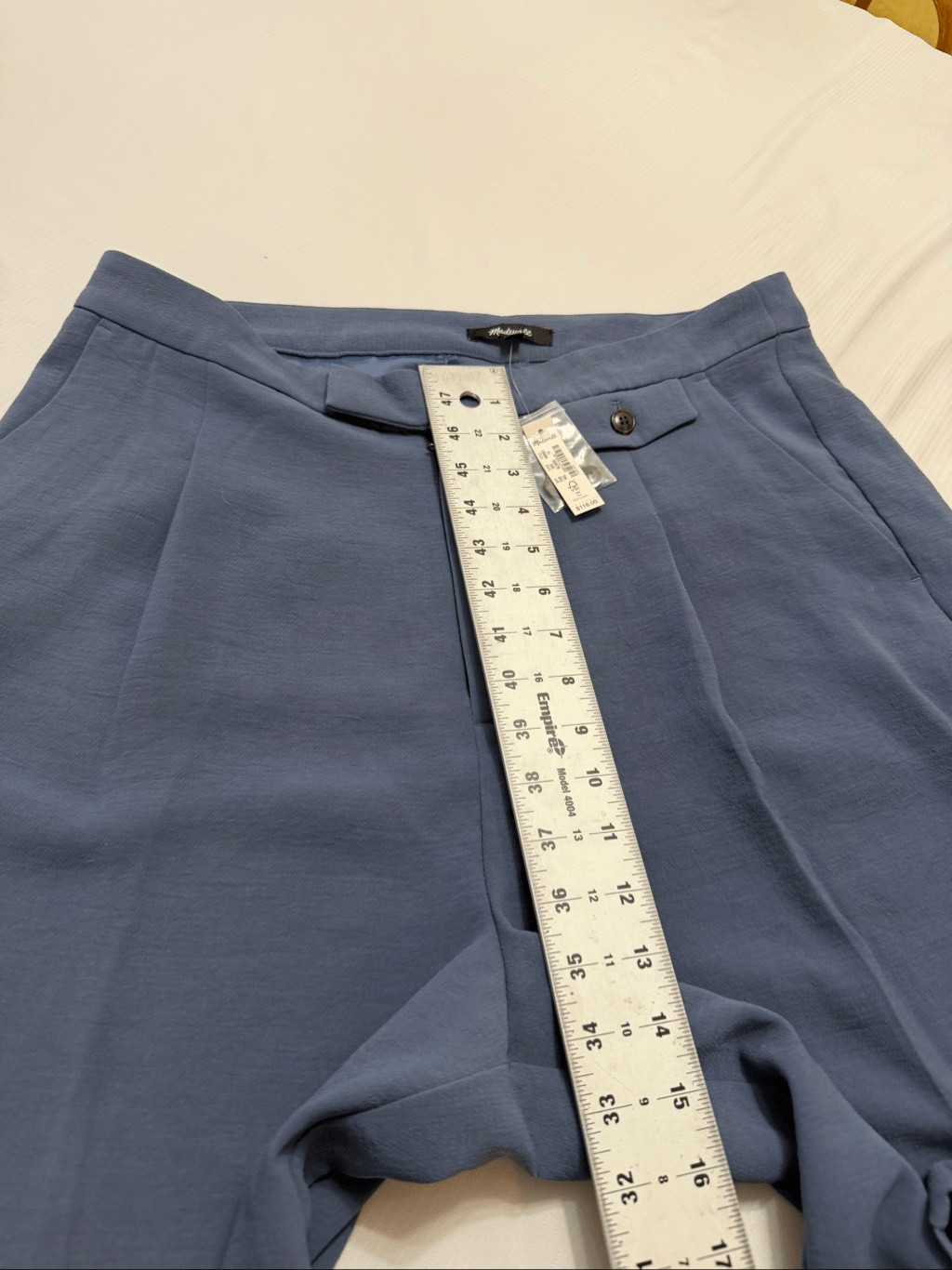 NWT Madewell The Rosedale High Rise Straight Pleated Pants Crepe Blue Size 14