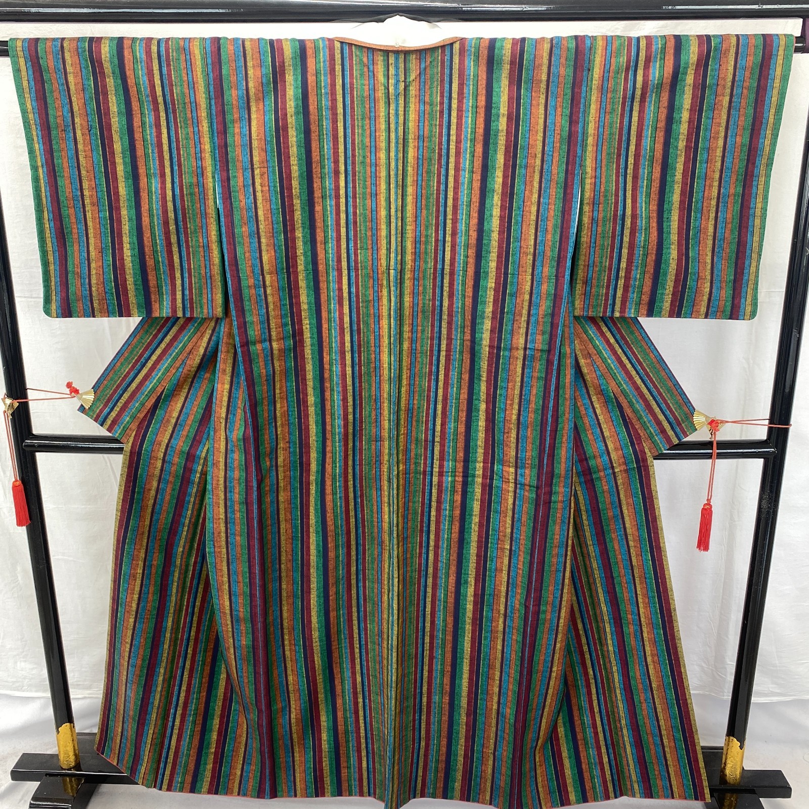 Japanese Vintage Kimono Silk Green Tumugi Traditional Authentic Length 61 in